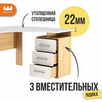 Особенностью стола является наличие тумбы с ящиком для хранения и полкой для принтера. Это позволяет удобно разместить все необходимые для работы предметы и обеспечивает быстрый доступ к ним.