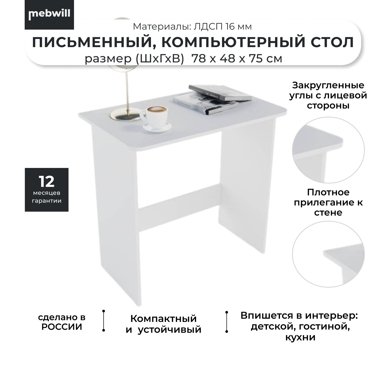 Купить Стол компьютерный Mebwill М-1 Белый, текстура Белый Шёлк, 78х48х75 см с доставкой по всей России. Стол компьютерный Mebwill М-1 Белый, текстура Белый Шёлк, 78х48х75 см: сравнение цен, характеристики, фото, актуальное наличие и цены.