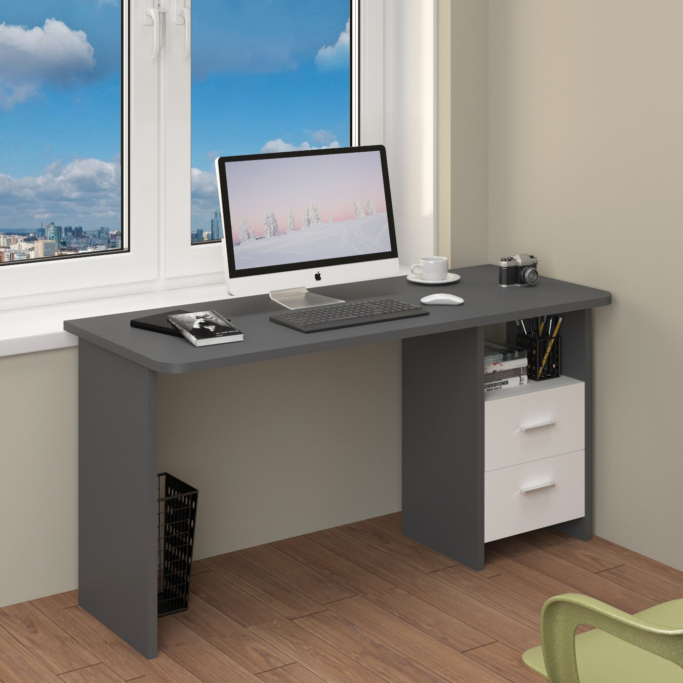 Стол компьютерный Мэрдэс СКЛ-Прям150Р ГБЕ Графит/Белый, с тумбой, скругленные углы, 150 х 60 х 77 см: сравнение цен, характеристики, фото, актуальное наличие и цены.