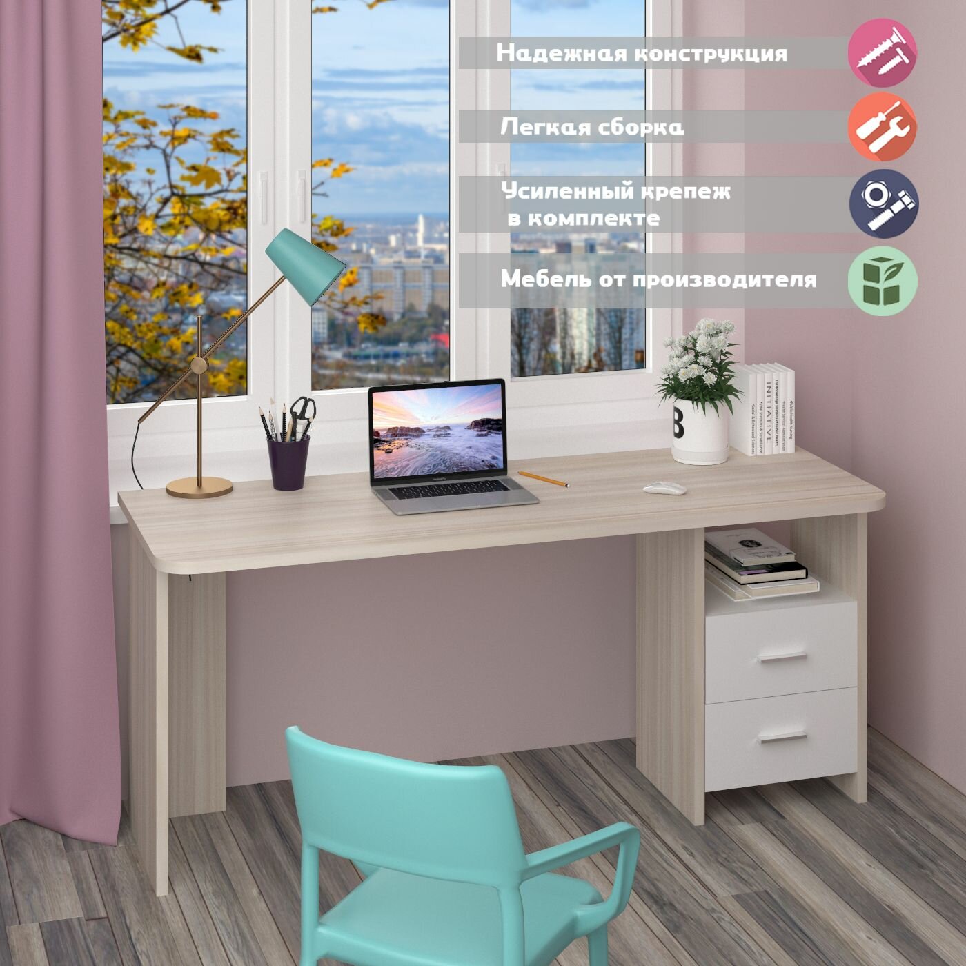 Стол компьютерный Мэрдэс СКЛ-Прям170Р КБЕ карамель/белый, с тумбой, 170 х 60 х 77 см, скругленные углы: сравнение цен, характеристики, фото, актуальное наличие и цены.