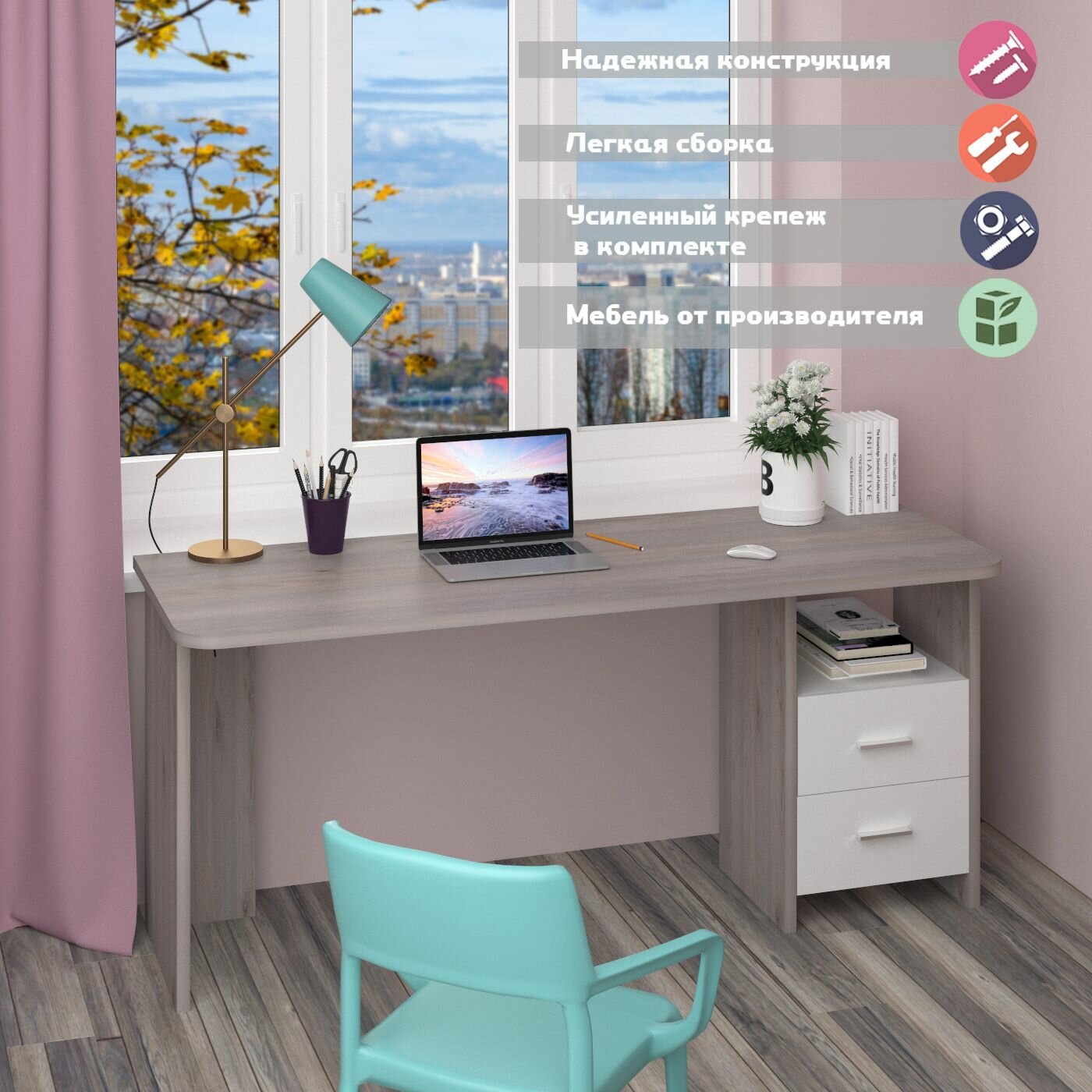 Стол компьютерный Мэрдэс СКЛ-Прям170Р НБЕ нельсон/белый, с тумбой, 170 х 60 х 77 см, скругленные углы: сравнение цен, характеристики, фото, актуальное наличие и цены.