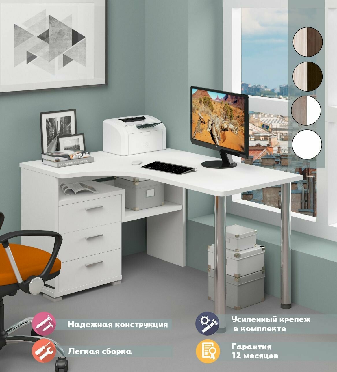 Стол компьютерный Мэрдэс СР-132С-140 БЕ-ЛЕВ Белый, угловой, 101 х 140 х 75 см, с ящиками: сравнение цен, характеристики, фото, актуальное наличие и цены.
