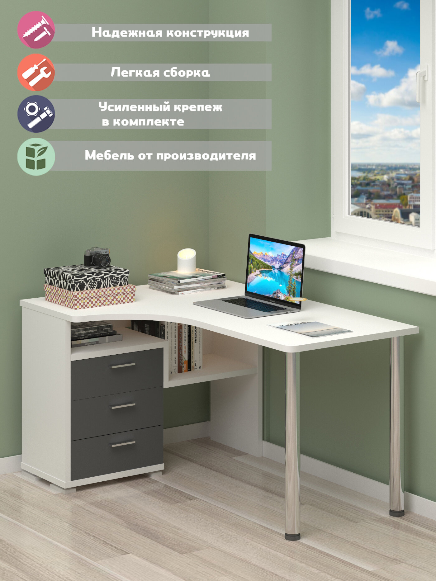 Стол компьютерный Мэрдэс СР-132С-140 БЕГ-ЛЕВ Белый/Графит, угловой, 101 х 140 х 75 см, с ящиками: сравнение цен, характеристики, фото, актуальное наличие и цены.