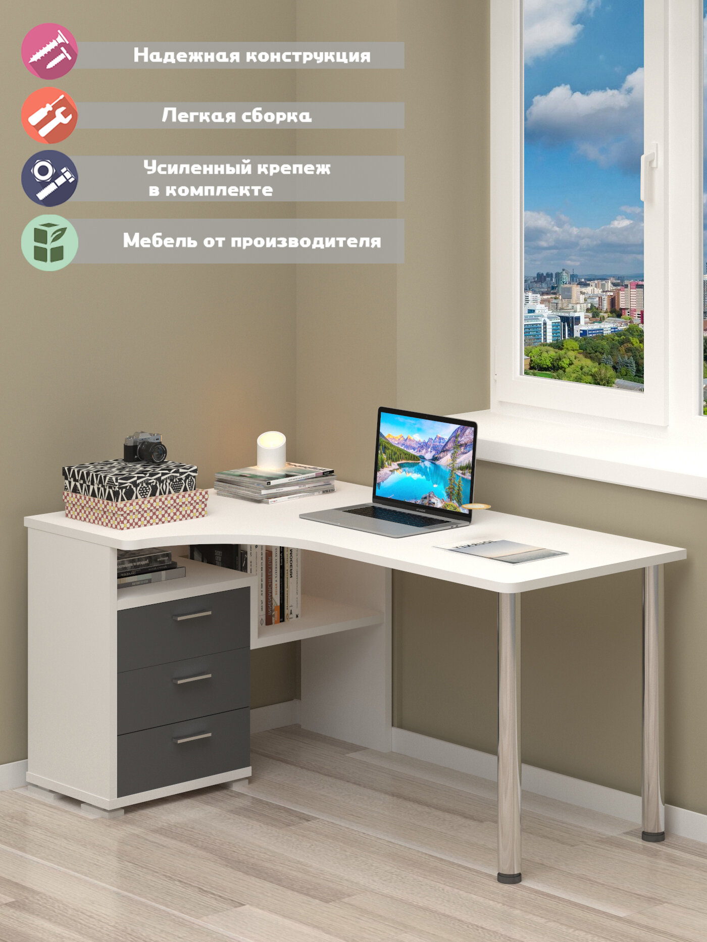 Стол компьютерный Мэрдэс СР-132С-150 БЕГ-ЛЕВ Белый/Графит, 101 х 150 х 75 см, угловой, с ящиками: сравнение цен, характеристики, фото, актуальное наличие и цены.
