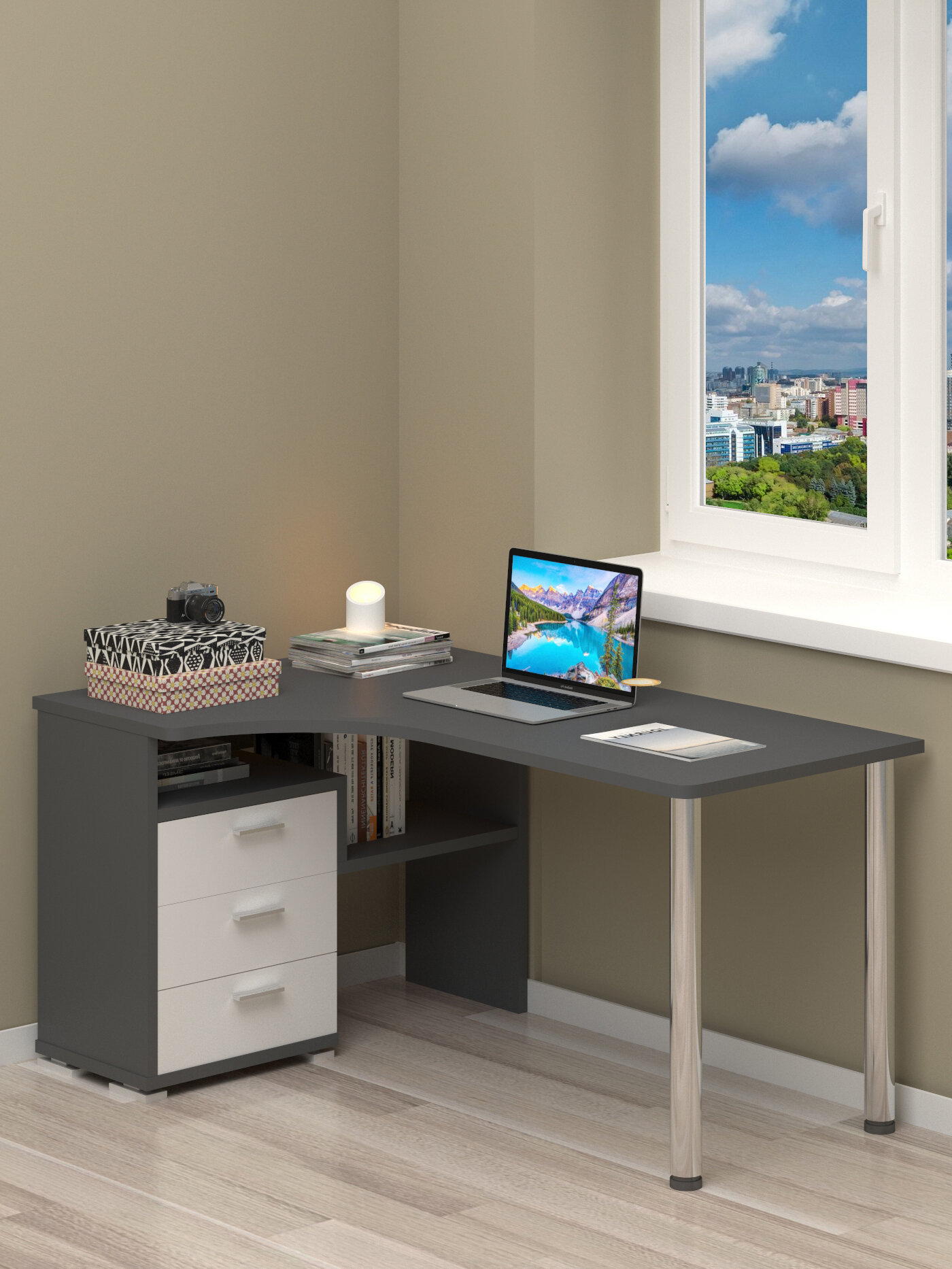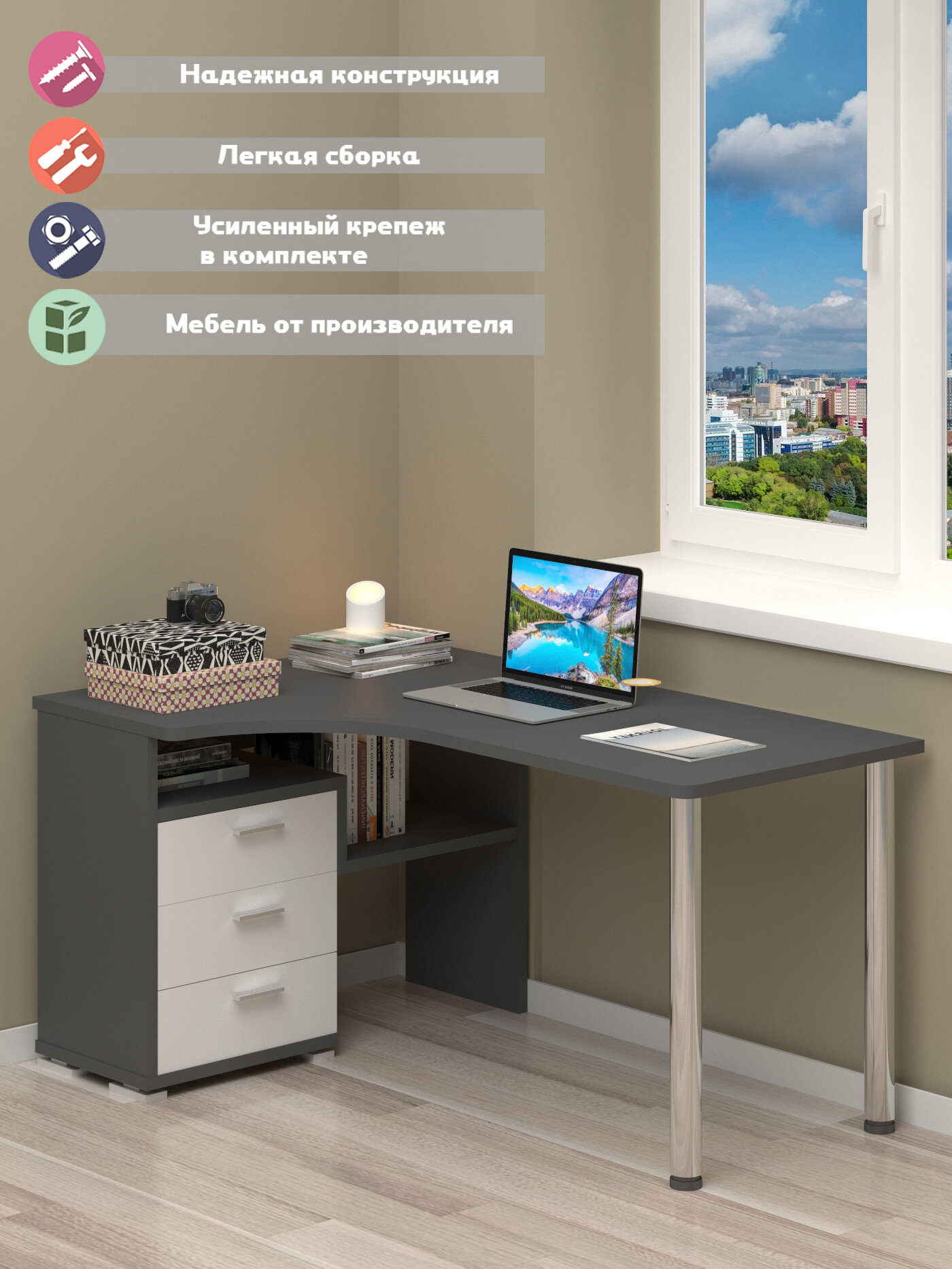 Стол компьютерный Мэрдэс СР-132С-150 ГБЕ-ЛЕВ Графит/Белый, 101 х 150 х 75 см, угловой, с ящиками: сравнение цен, характеристики, фото, актуальное наличие и цены.