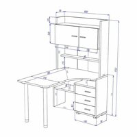 надстройка, органайзер для проводов, полка для принтера, с тумбой, с ящиком для хранения, угловой