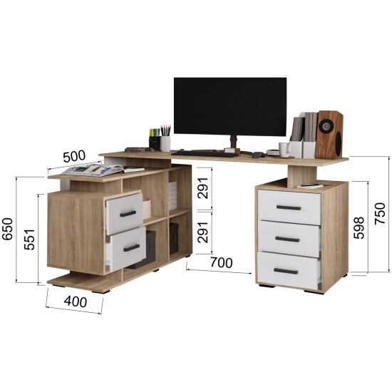 Стол компьютерный Микон угловой СКМУ-3 дуб сонома/белый: сравнение цен, характеристики, фото, актуальное наличие и цены.
