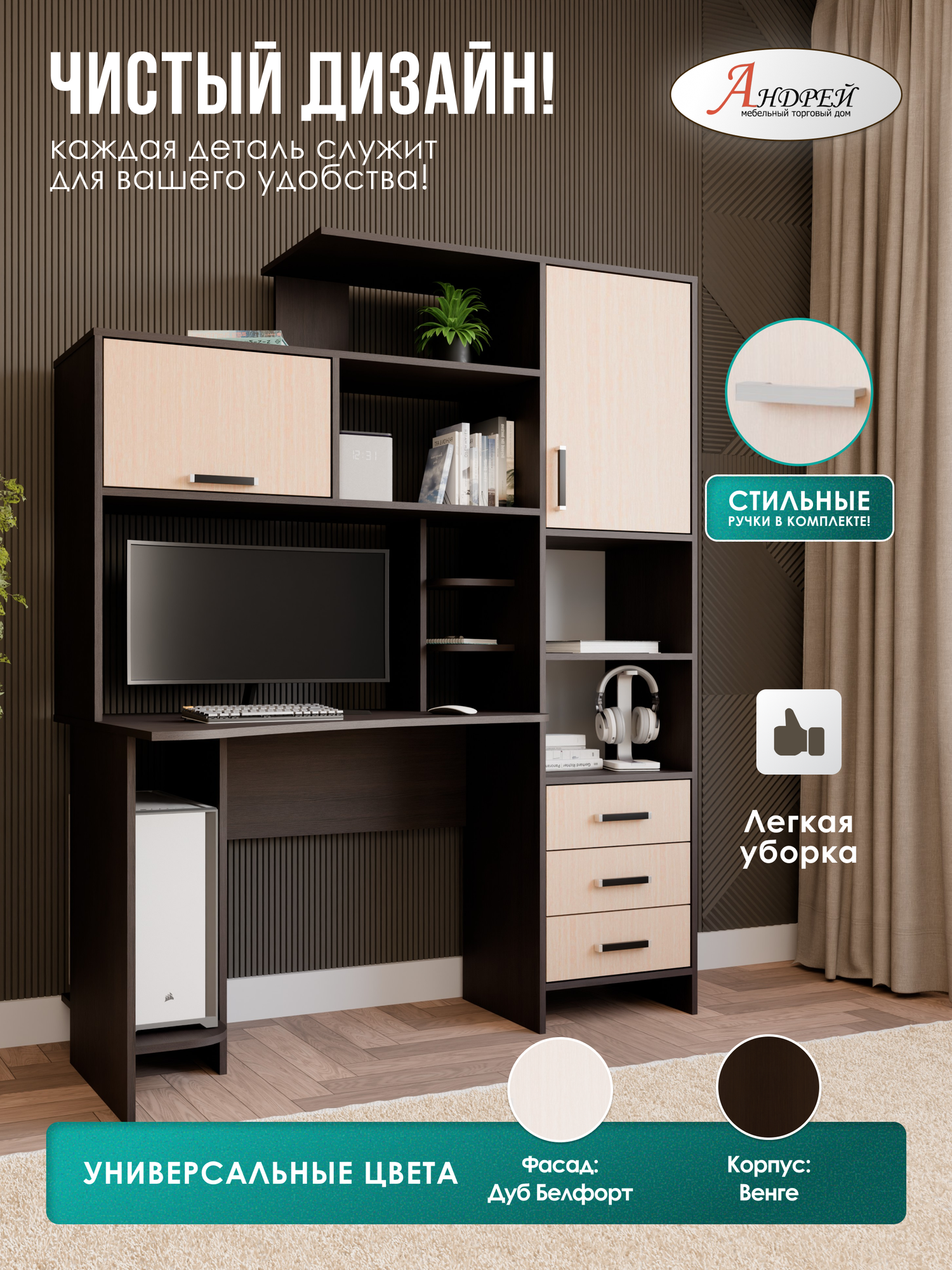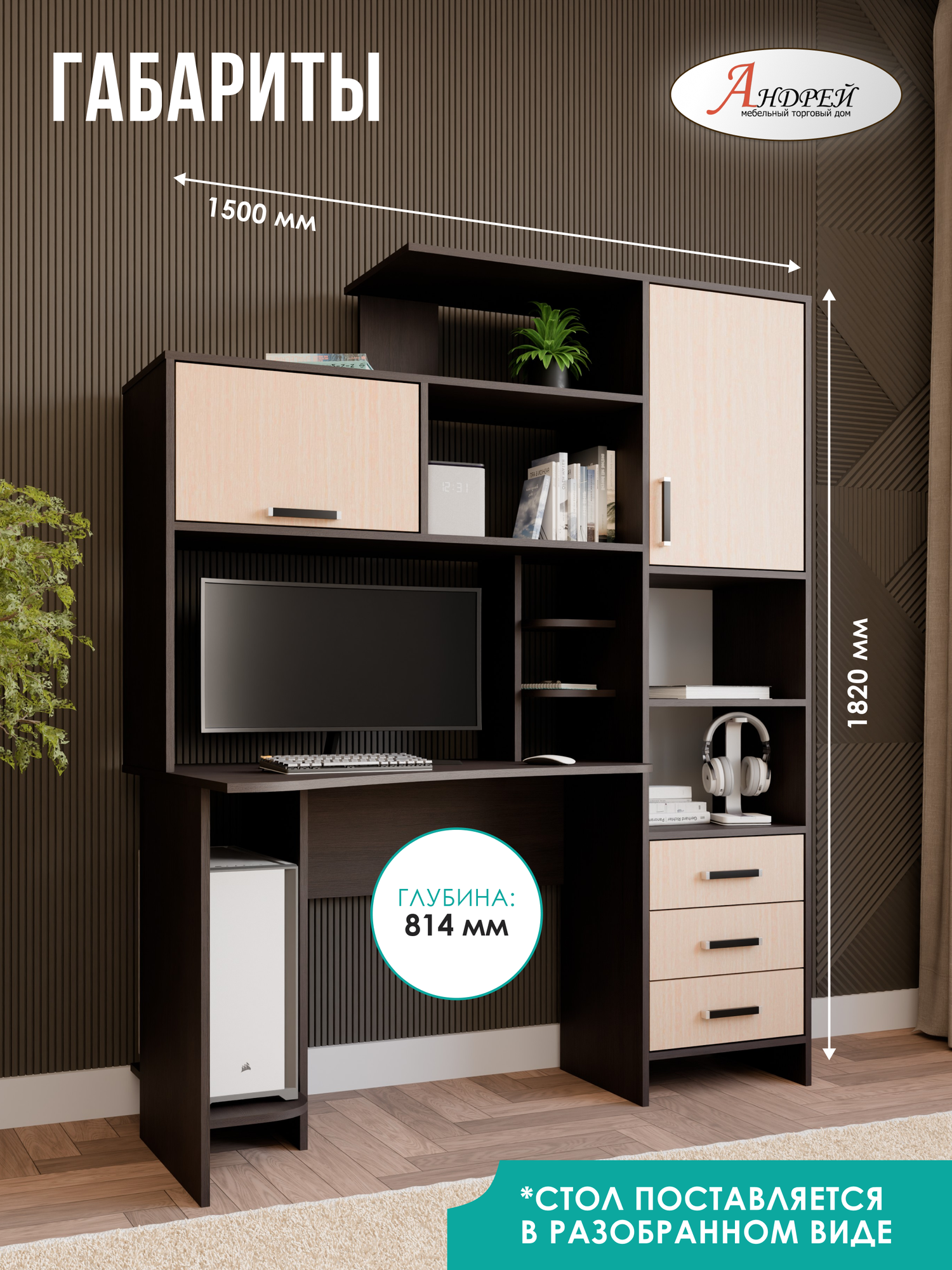 Стол компьютерный Арден - современный элемент интерьера, который станет незаменимым помощником для работы, учебы или отдыха. Корпус и фасад стола представлены в цвете венге/дуб млечный. Стол выполнен из ЛДСП, что обеспечивает его долговечность и надежность. Так же стол оборудован удобной надстройкой и отделением для системного блока, что позволяет максимально эффективно использовать пространство. Также в столе предусмотрены тумба с ящиком для хранения и полка для принтера. Особенностью стола является его угловая конструкция, что позволяет сэкономить пространство в комнате. Стол поставляется в разобранном виде, что облегчает его транспортировку и сборку. Сборка возможна только так, как показано на фотографии. Цвет ручки С -18 (черная) Выбирая компьютерный Арден, вы получаете не только стильный и функциональный предмет мебели, но и гарантию комфорта и удобства на долгие годы."