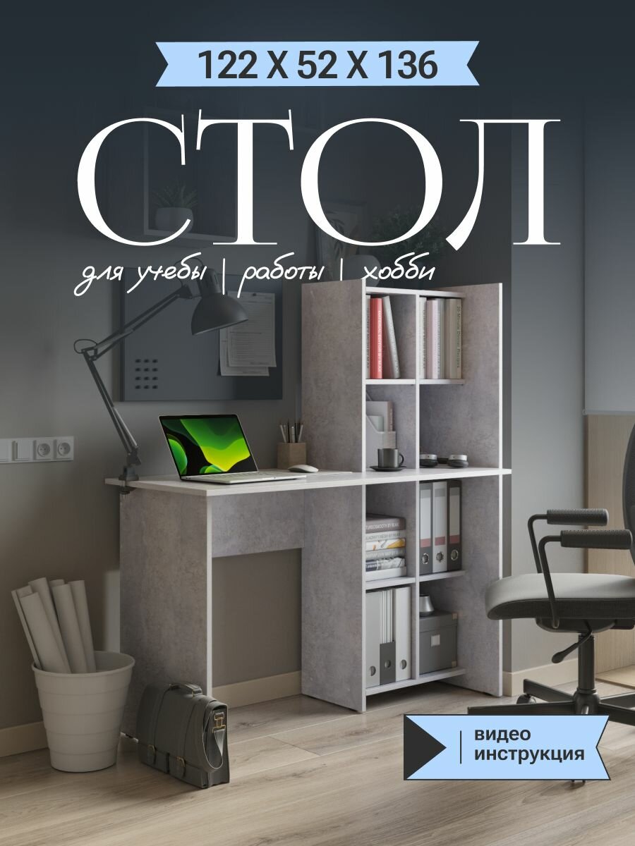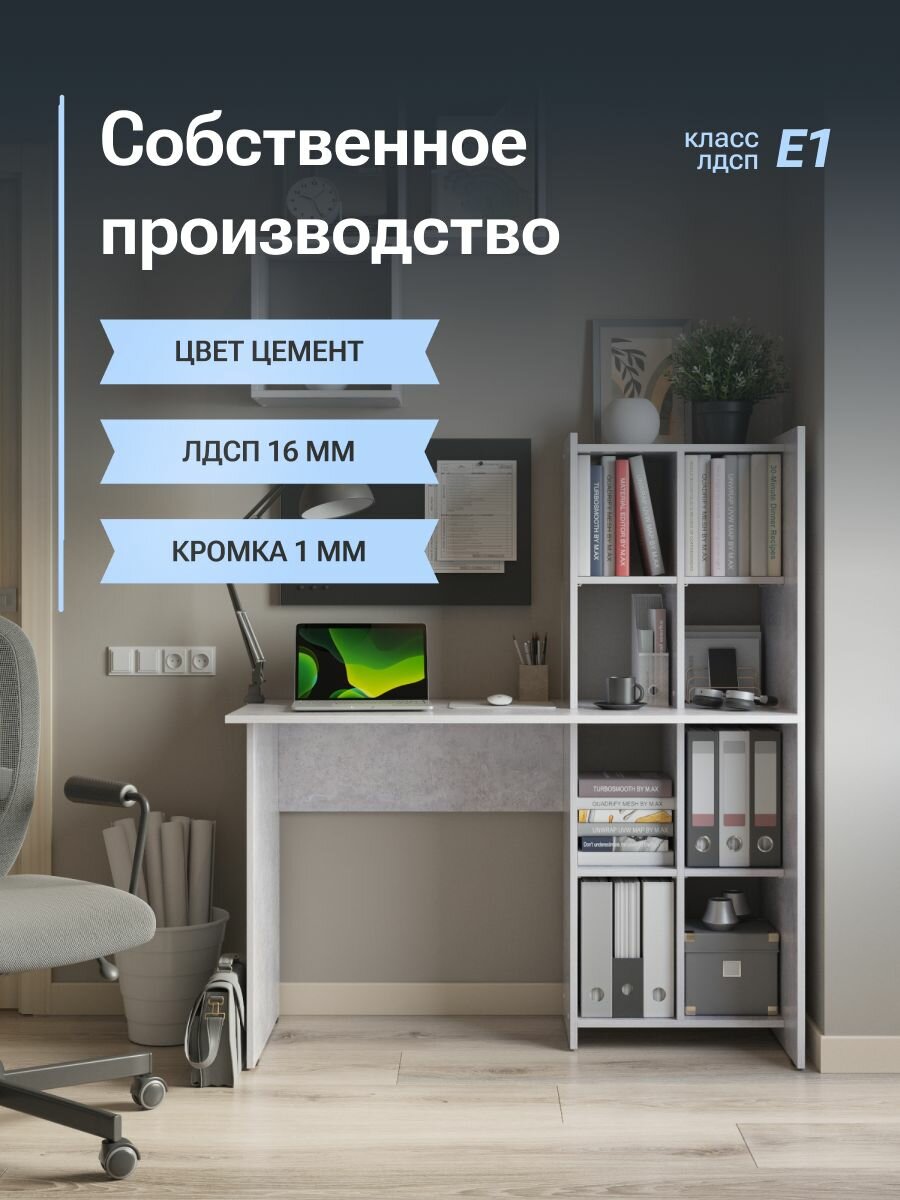 Стол компьютерный письменный «Эдем-1» Цемент с надстройкой, 1218х522х1358 мм.: сравнение цен, характеристики, фото, актуальное наличие и цены.