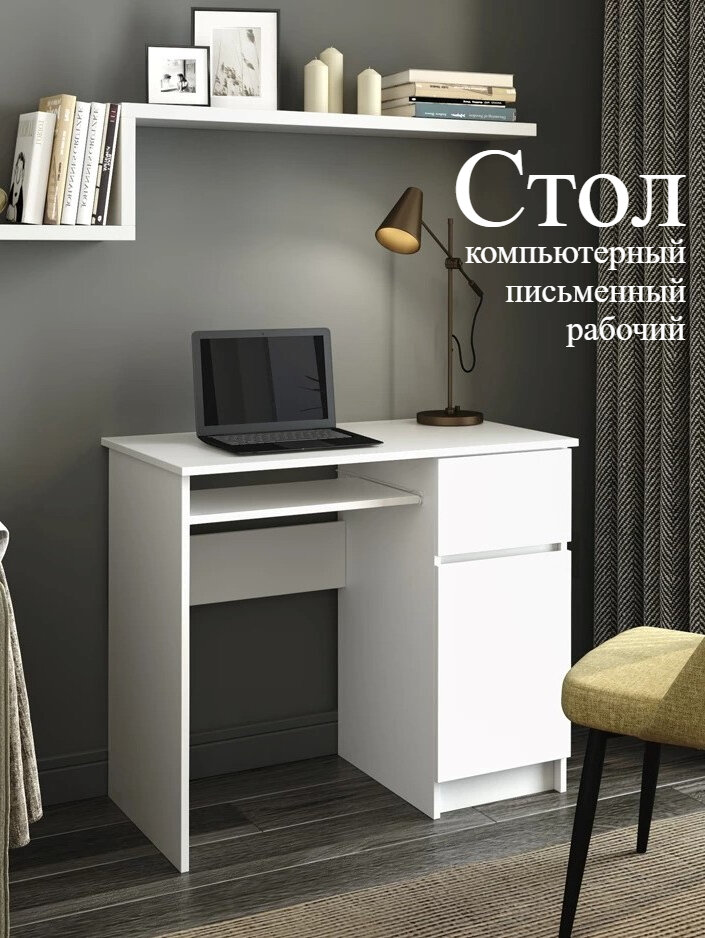 Купить Стол компьютерный, письменный с ящиком и полкой Лето правый, белый с доставкой по всей России. Стол компьютерный, письменный с ящиком и полкой Лето правый, белый: сравнение цен, характеристики, фото, актуальное наличие и цены.