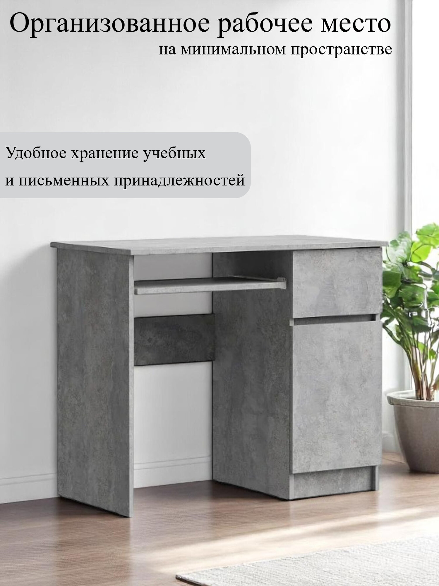 Стол компьютерный, письменный с ящиком и полкой Лето правый, цемент светлый: сравнение цен, характеристики, фото, актуальное наличие и цены.