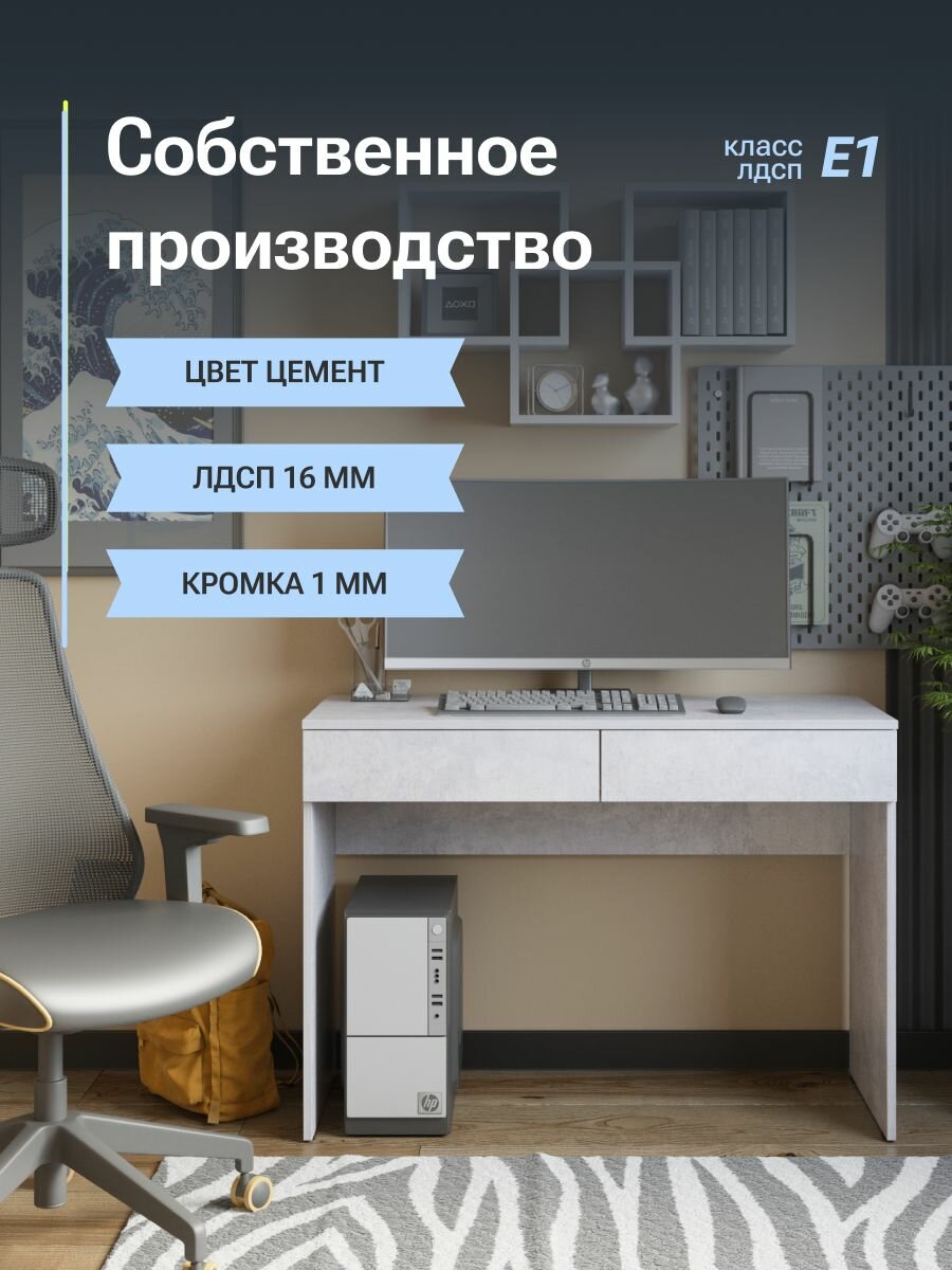 Стол компьютерный письменный «Верона-2» цемент с ящиками, 1050х496х755 мм.: сравнение цен, характеристики, фото, актуальное наличие и цены.