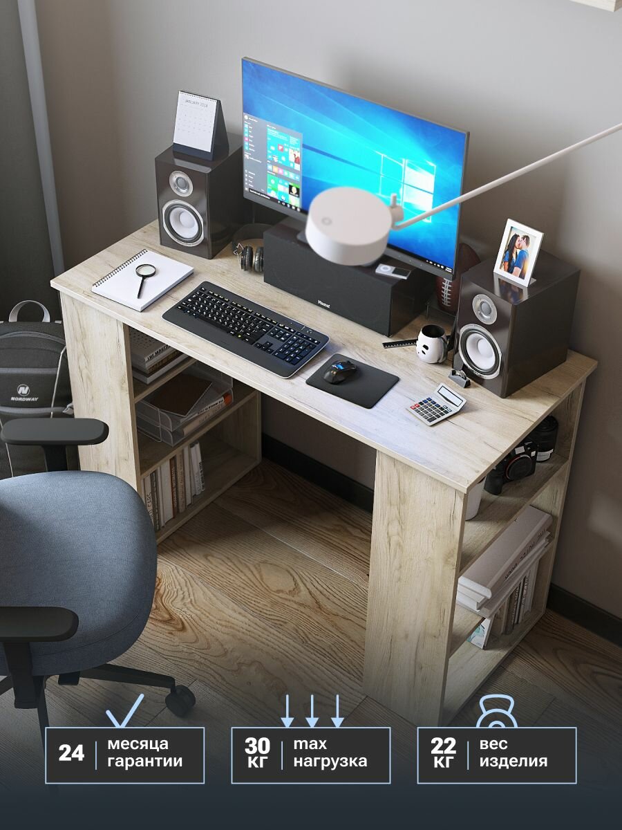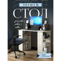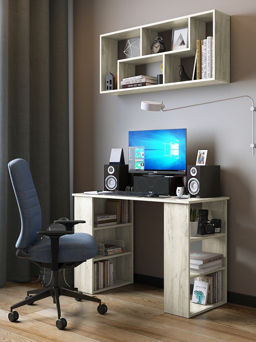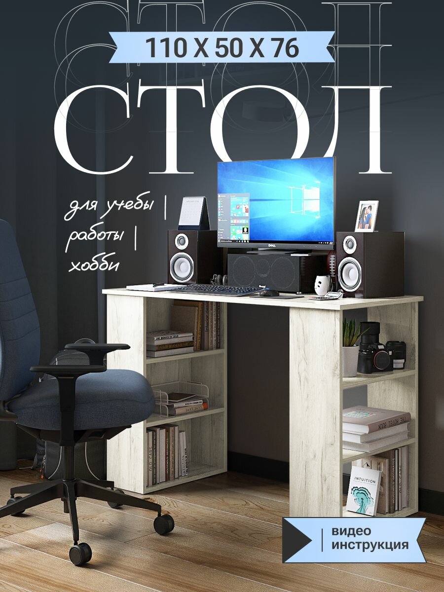Стол компьютерный письменный «Верона» дуб крафт белый с полками, 1100х500х750 мм.: сравнение цен, характеристики, фото, актуальное наличие и цены.