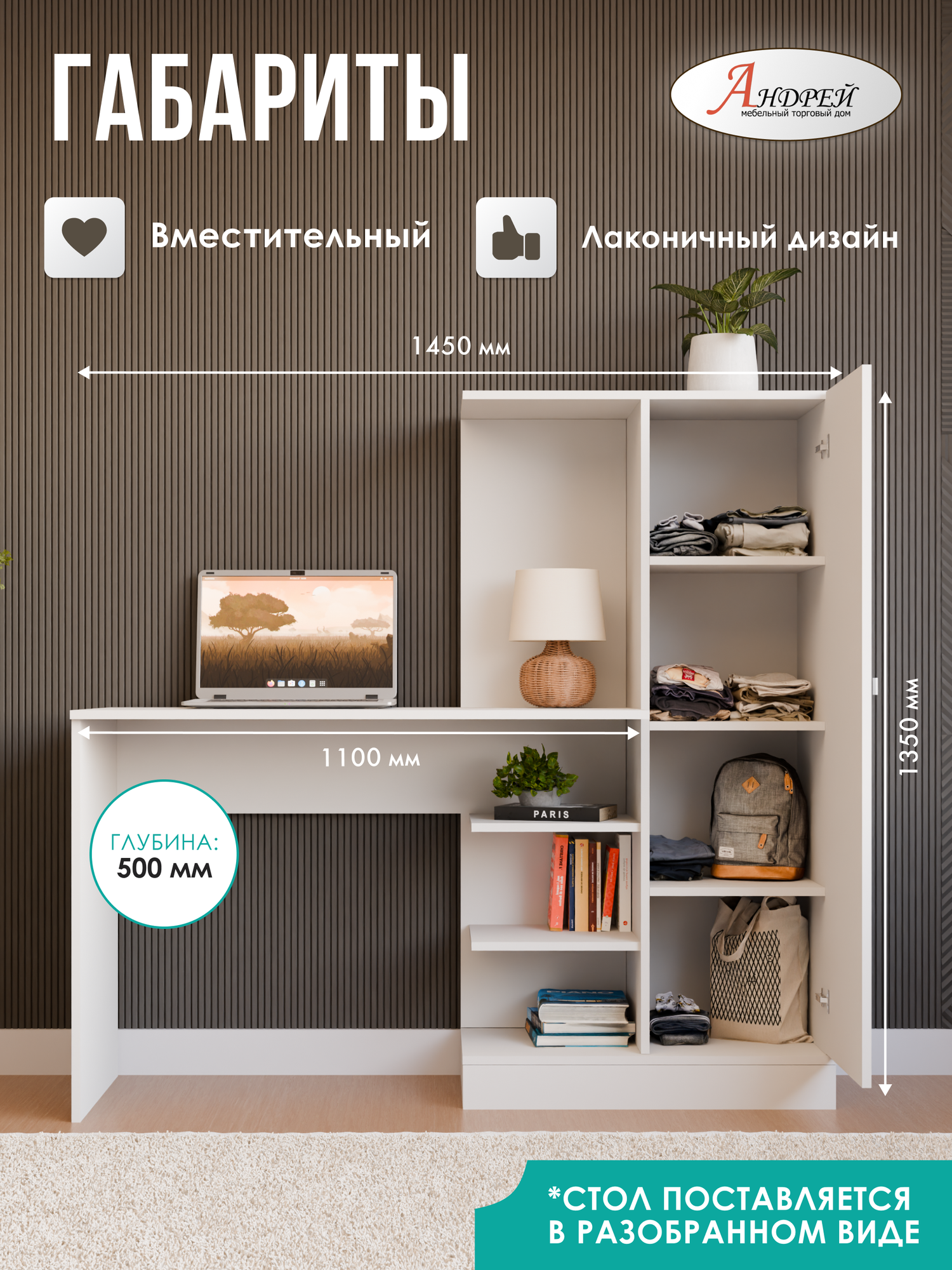 Компьютерный стол Рейвуд: стиль и функциональность Компьютерный стол Рейвуд представляет собой стильное и функциональное решение для организации рабочего пространства. Выполненный в современном стиле, он легко впишется в любой интерьер. Материалы и дизайн Стол изготовлен из качественного ЛДСП, что обеспечивает надежность и устойчивость конструкции. Материал столешницы и основания – ЛДСП, что обеспечивает надежность и устойчивость конструкции. Функциональность и удобство Стол Рейвуд оснащен полками для хранения, что позволяет удобно разместить все необходимые аксессуары и документы. Высота стола составляет 135 см, что обеспечивает комфортное рабочее пространство. Опоры стола имеют пластиковые подпятники, которые предохраняют напольные покрытия от повреждений. Товар поставляется в разобранном виде, что облегчает его транспортировку и установку. Выбирая компьютерный стол Рейвуд, вы получаете стильный, функциональный и практичный предмет мебели, который станет незаменимым помощником в организации вашего рабочего пространства.
