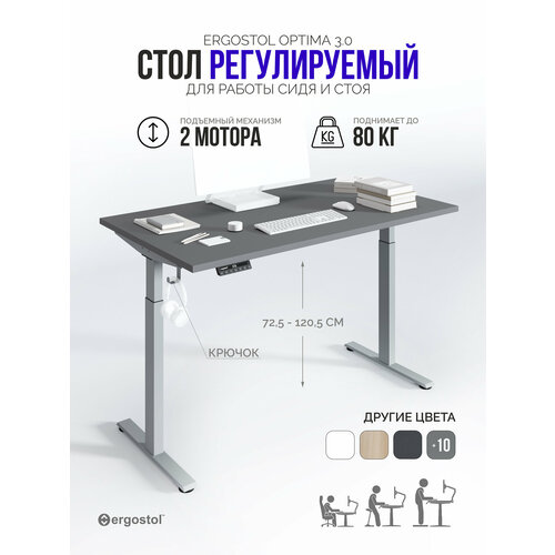 Купить Стол компьютерный регулируемый по высоте Ergostol Optima 2.0 160х80 см, Серый асфальт/серебристый с доставкой по всей России. Стол компьютерный регулируемый по высоте Ergostol Optima 2.0 160х80 см, Серый асфальт/серебристый: сравнение цен, характеристики, фото, актуальное наличие и цены.