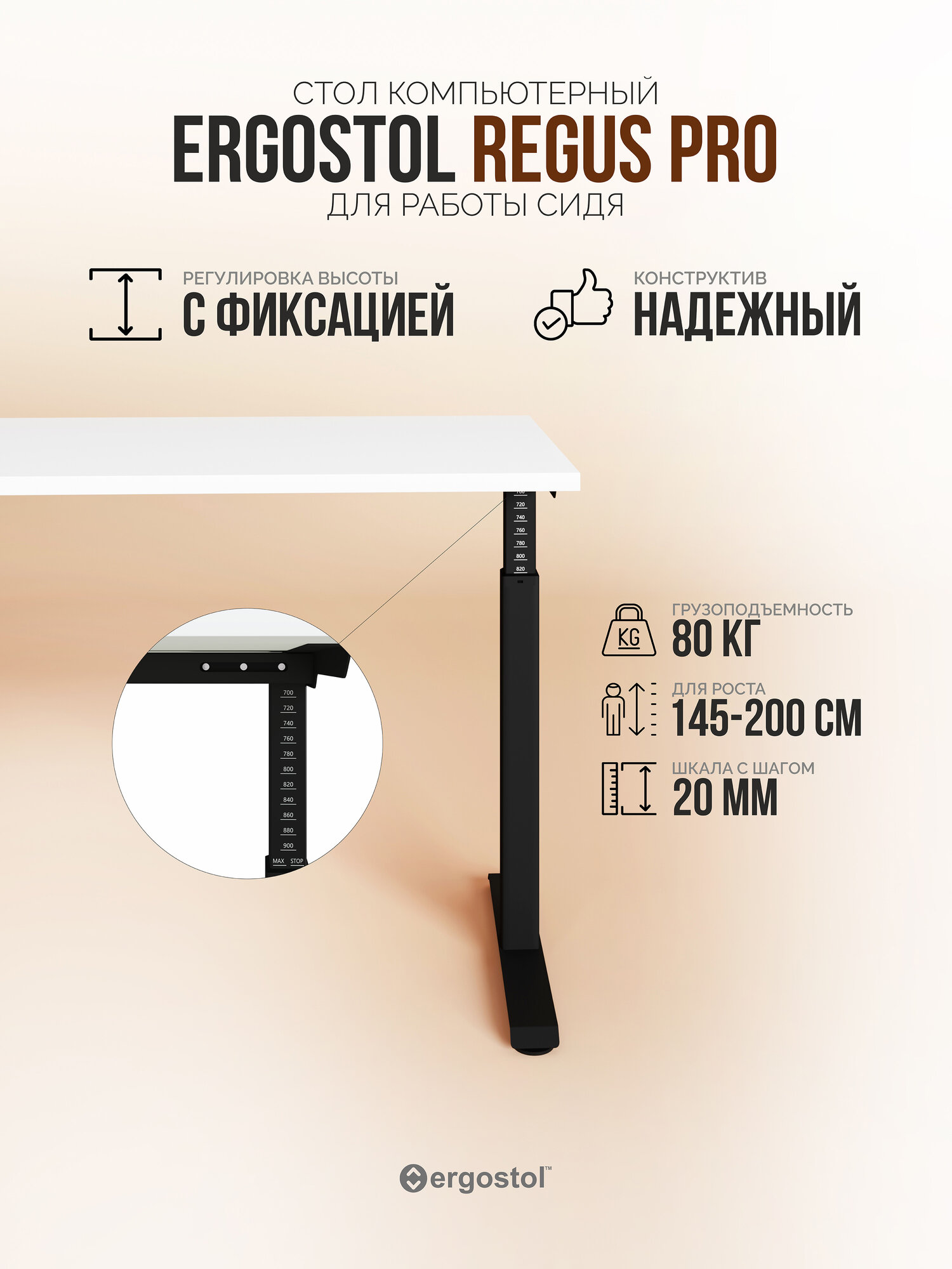 Стол компьютерный регулируемый по высоте Ergostol Regus Pro 138х68 см, Белый шагрень/черный: сравнение цен, характеристики, фото, актуальное наличие и цены.