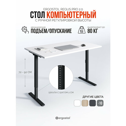 Стол компьютерный письменный Ergostol Regus Pro с механической регулировкой высоты рассчитан на максимально поднимаемый вес 80 кг. и подходит для работы сидя пользователям ростом от 145 до 200 см.