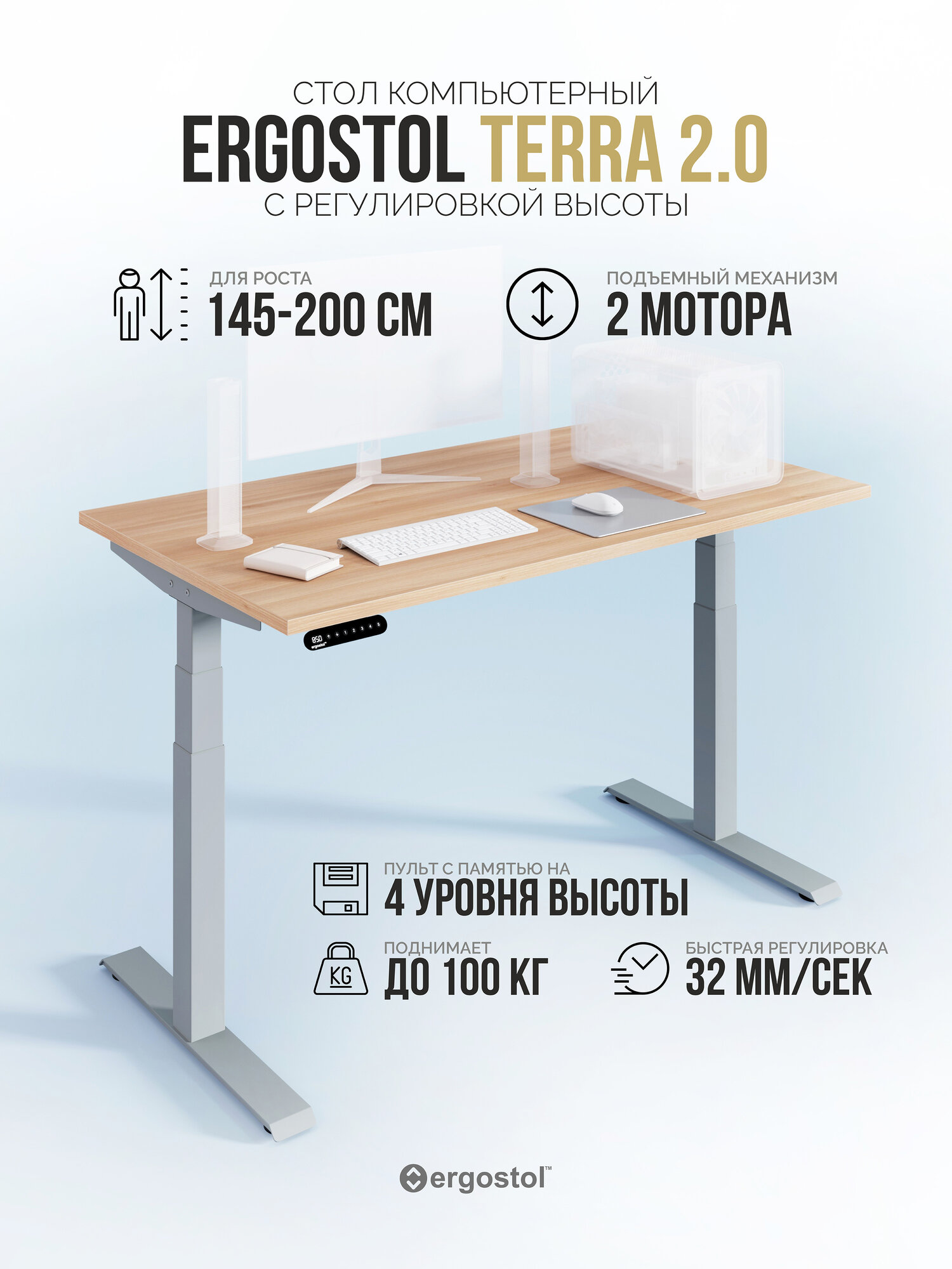 Стол компьютерный регулируемый по высоте Ergostol Terra 2.0 138х68 см, Акация лэйкленд светлая/серебристый: сравнение цен, характеристики, фото, актуальное наличие и цены.
