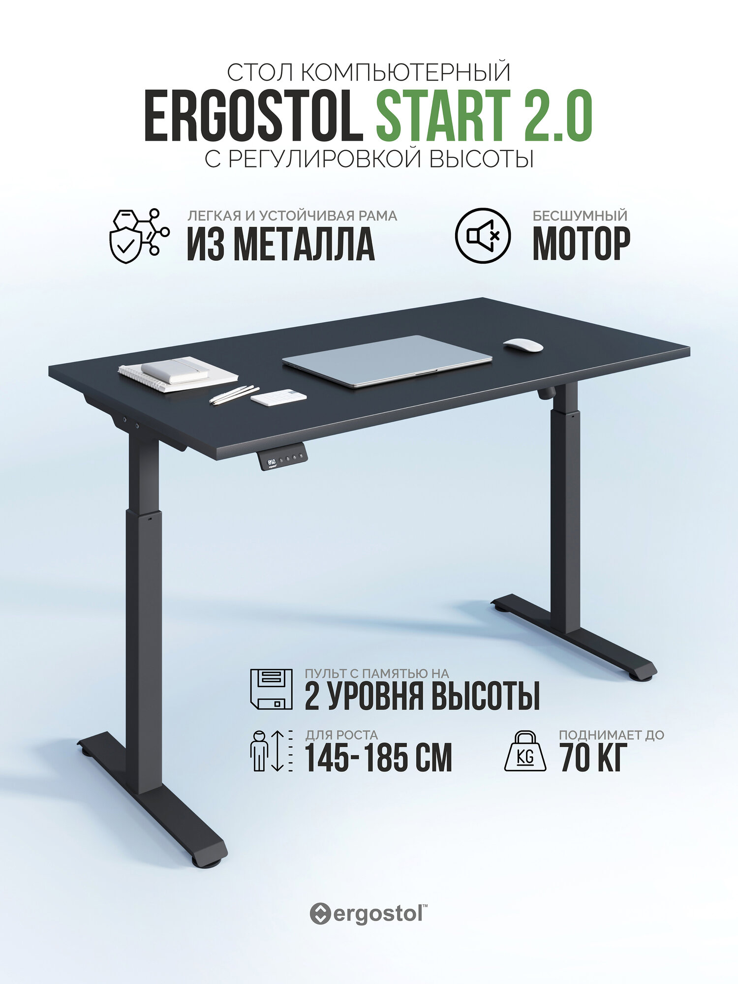 Купить Стол компьютерный регулируемый по высоте, одномоторный Ergostol Start 2.0, 138х68 см, Черный графит/черный с доставкой по всей России.