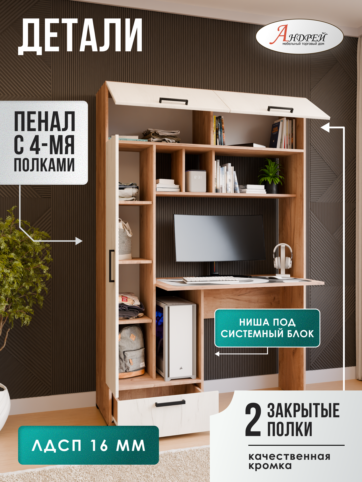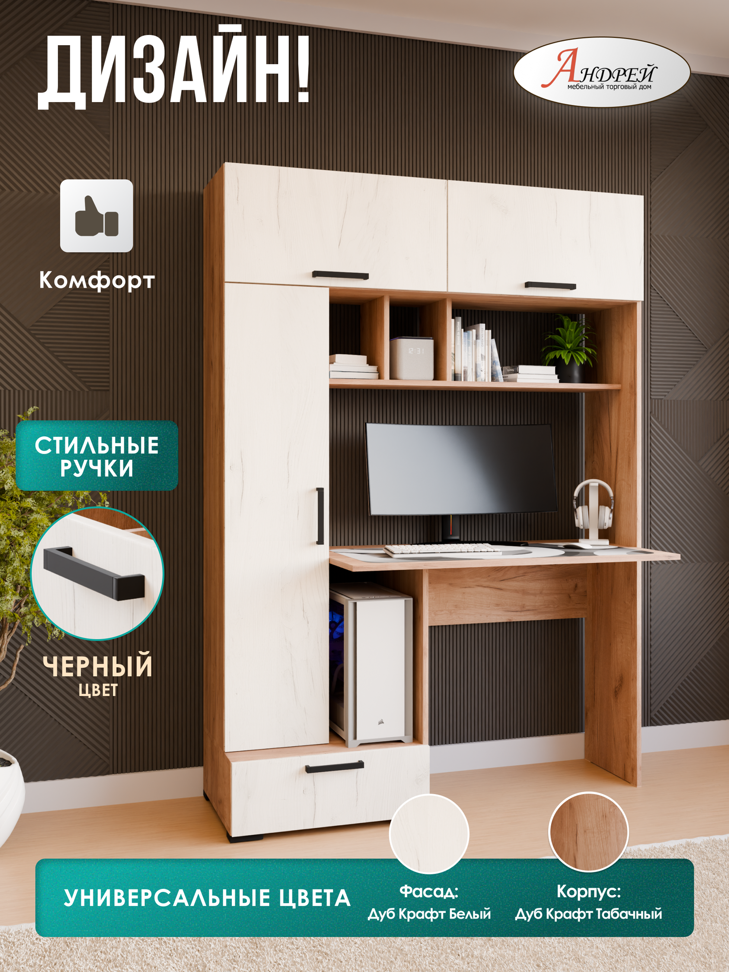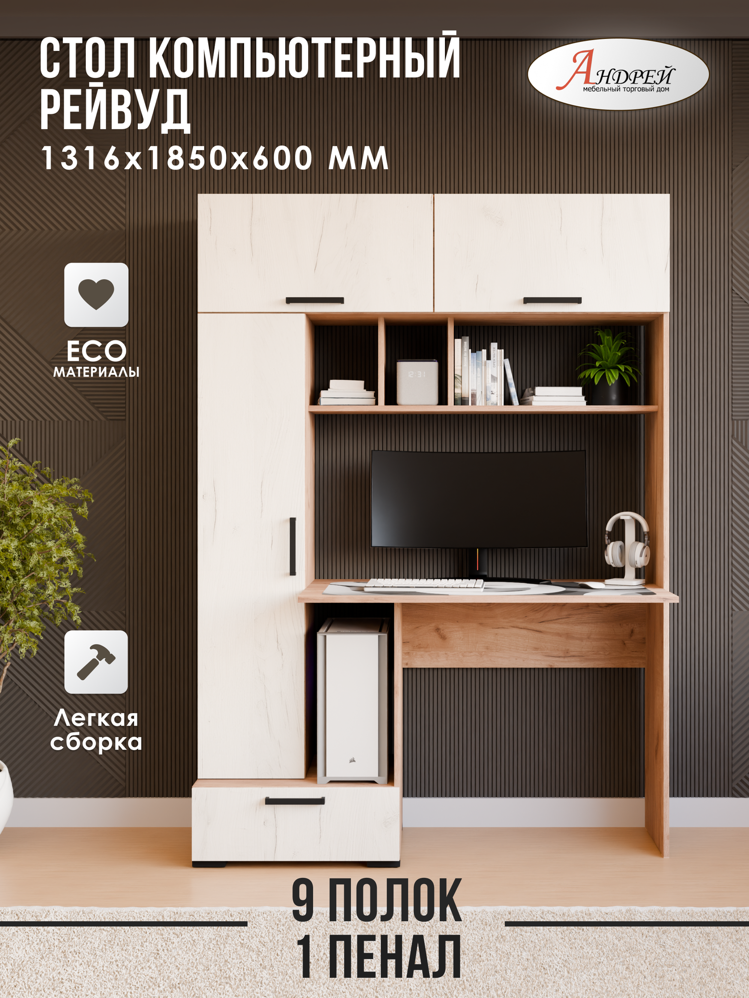 Стол компьютерный Рейвуд 185,0х131,6х60,0 см, дуб крафт табачный/дуб крафт белый: сравнение цен, характеристики, фото, актуальное наличие и цены.