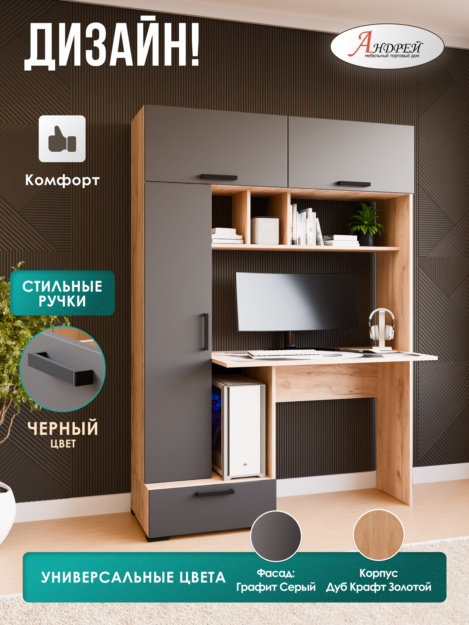 Стол компьютерный Рейвуд 185,0х131,6х60,0 см, дуб крафт золотой/графит серый: сравнение цен, характеристики, фото, актуальное наличие и цены.