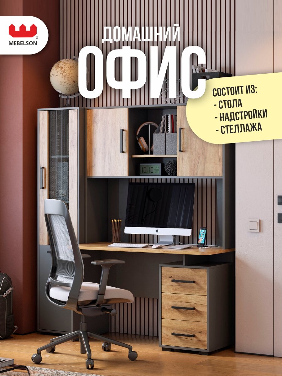Купить Стол компьютерный с надстройкой и стеллажом Лайт К3, Графит/дуб крафт золотой, MEBELSON с доставкой по всей России.