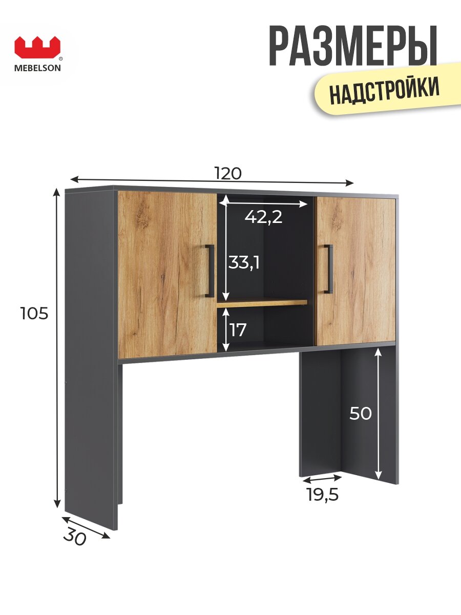 Стол компьютерный с надстройкой и стеллажом Лайт К3, Графит/дуб крафт золотой, MEBELSON: сравнение цен, характеристики, фото, актуальное наличие и цены.
