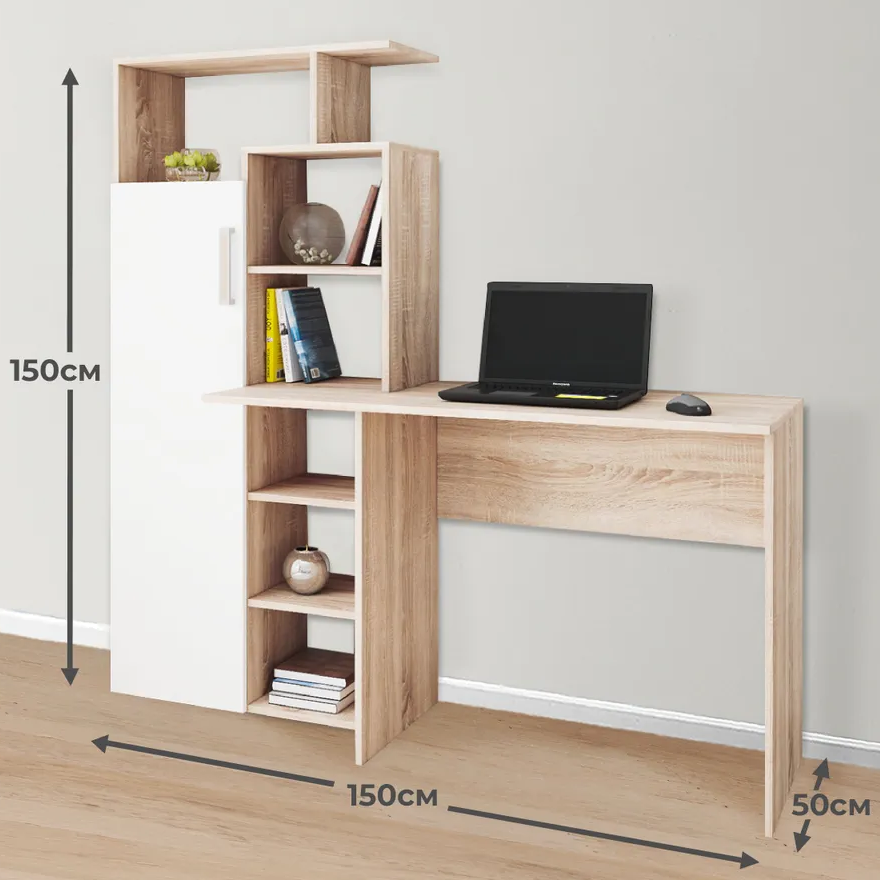 Купить Стол компьютерный с пеналом, со стеллажом, ЛДСП, Дуб сонома/белый Квартет-7 с доставкой по всей России. Стол компьютерный с пеналом, со стеллажом, ЛДСП, Дуб сонома/белый Квартет-7: сравнение цен, характеристики, фото, актуальное наличие и цены.
