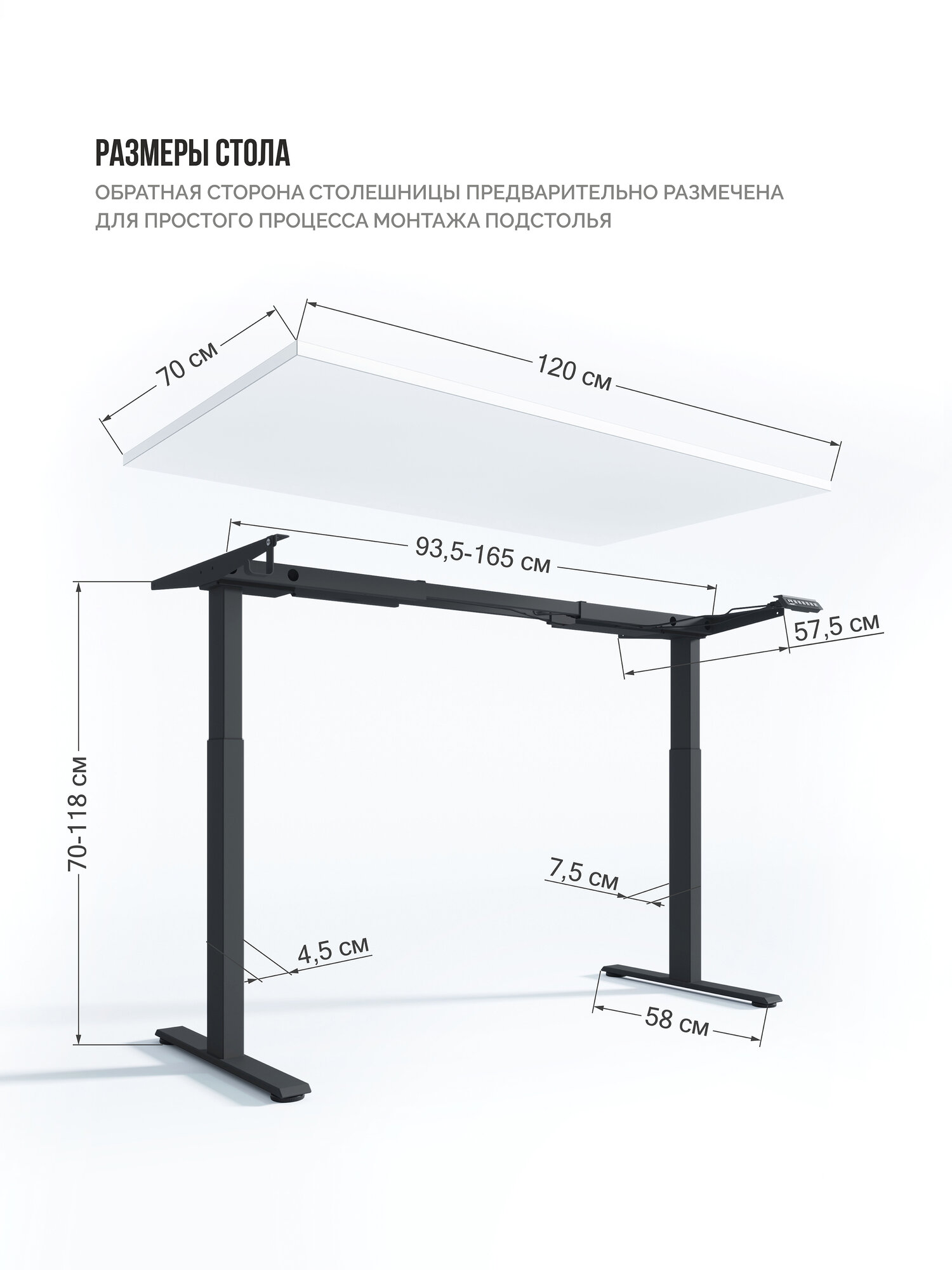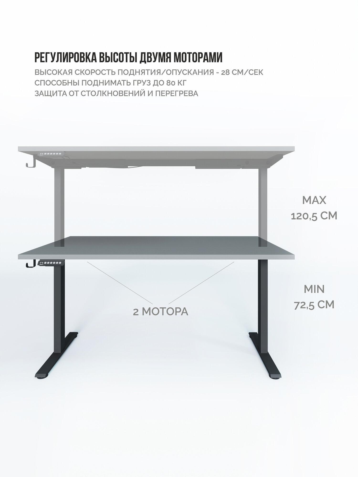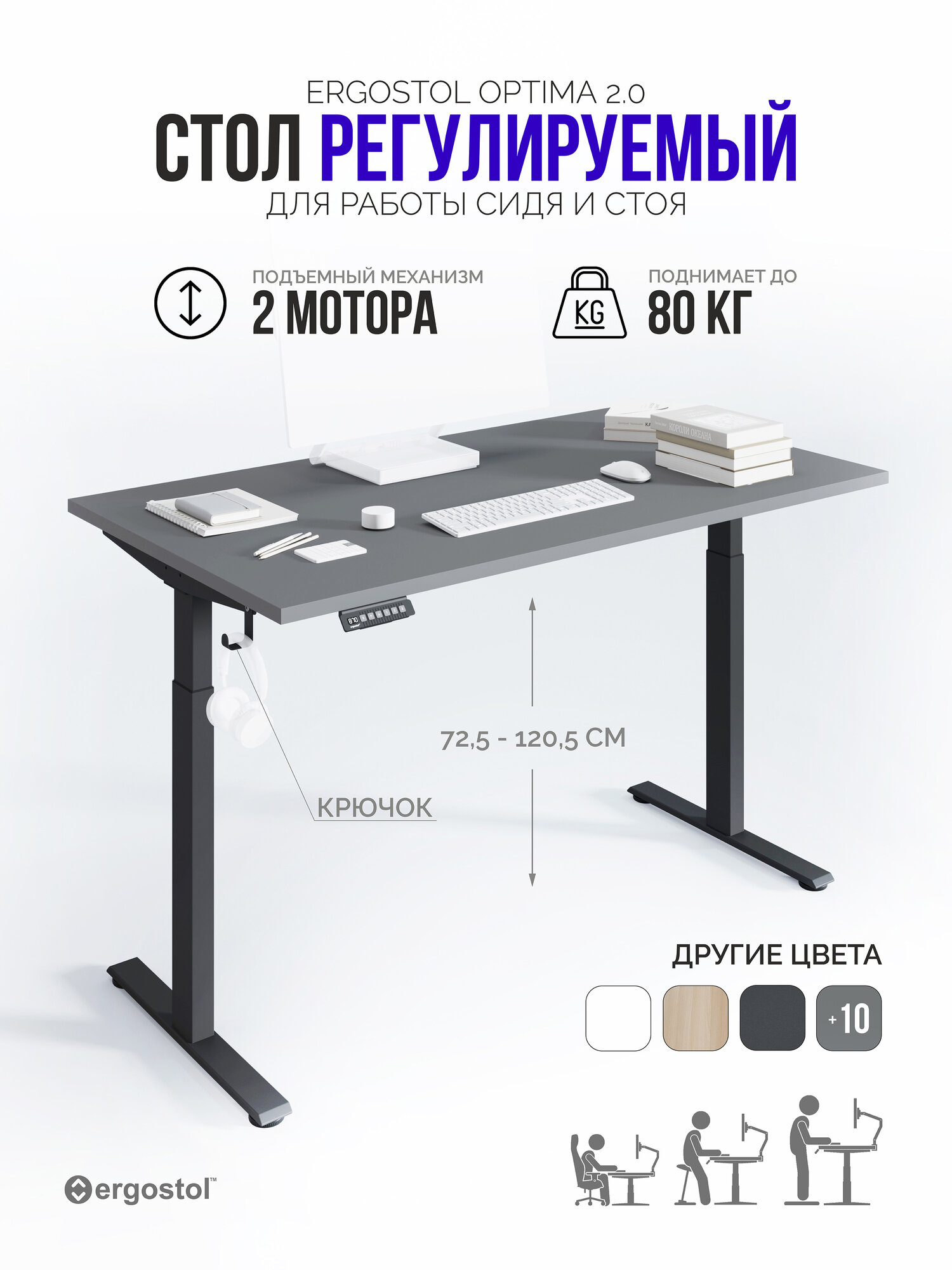 Стол компьютерный с подъемным механизмом Ergostol Optima 2.0 120х68 см, стол с регулировкой высоты, Серый асфальт/черный: сравнение цен, характеристики, фото, актуальное наличие и цены.