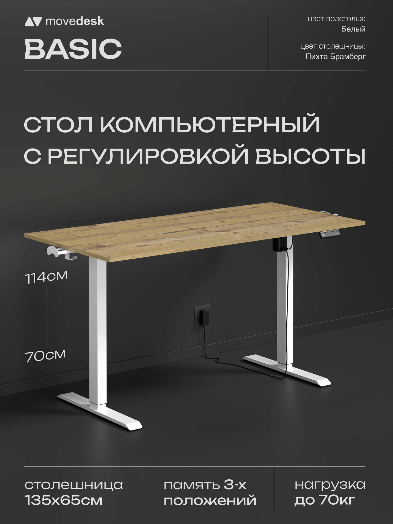 Стол компьютерный с подъемным механизмом Movedesk Basic Белый/Пихта Брамберг, ЛДСП Egger 135х65х1.6 см: сравнение цен, характеристики, фото, актуальное наличие и цены.