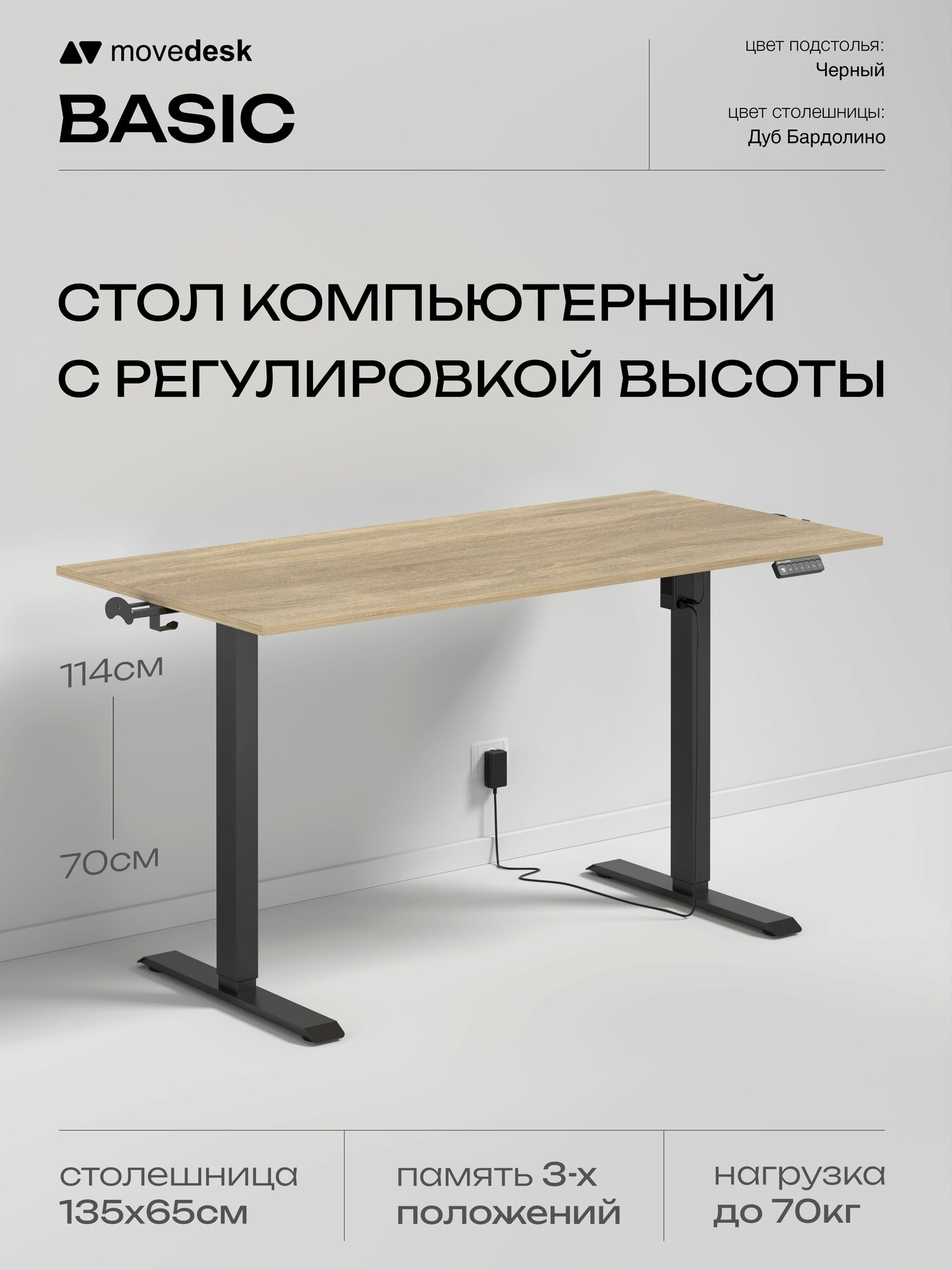 Стол компьютерный с подъемным механизмом Movedesk Basic Черный/Дуб Бардолино натуральный, ЛДСП Egger 135х65х1.6 см: сравнение цен, характеристики, фото, актуальное наличие и цены.