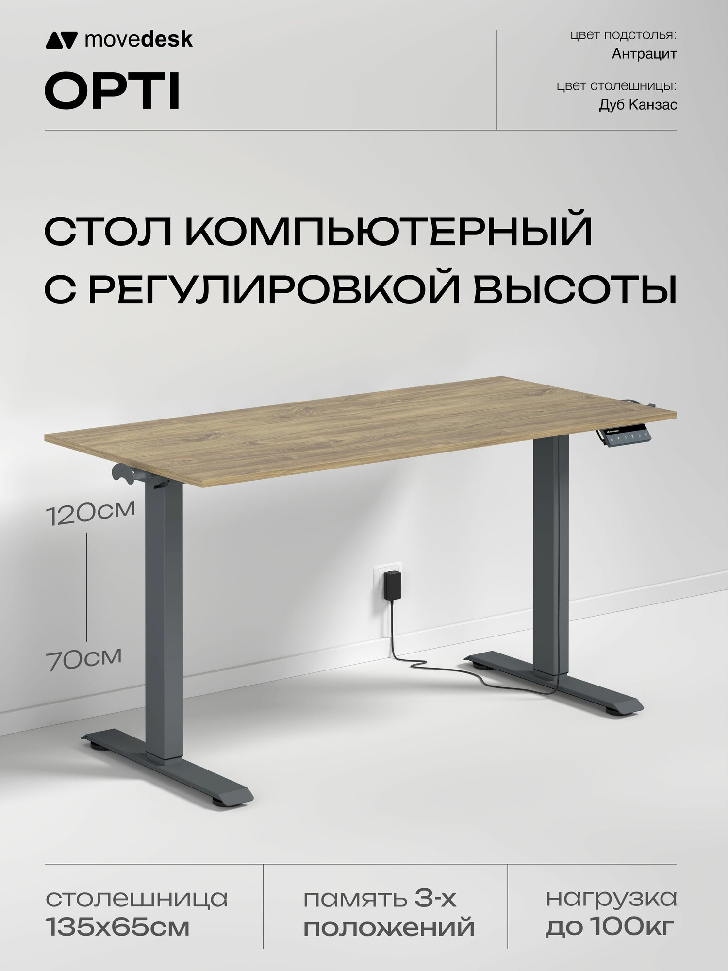 Стол компьютерный с подъемным механизмом Movedesk Opti Антрацит/Дуб Канзас коричневый, ЛДСП Egger 135х65х1.6 см: сравнение цен, характеристики, фото, актуальное наличие и цены.