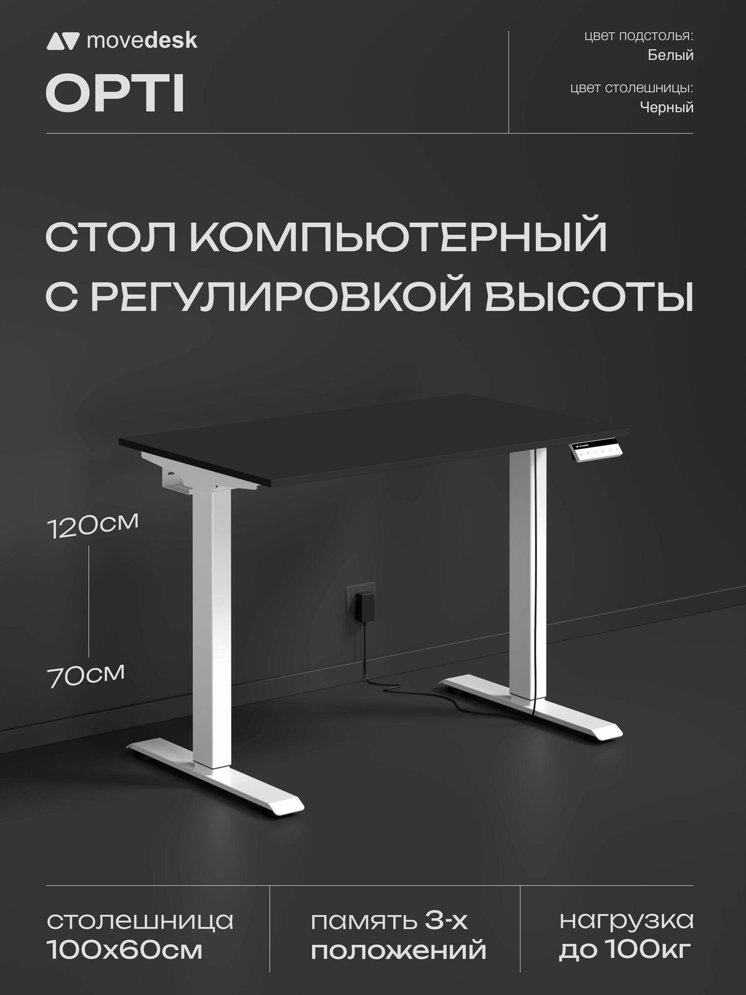 Стол компьютерный с подъемным механизмом Movedesk Opti Белый/Черный, ЛДСП Egger 100х60х1.6 см: сравнение цен, характеристики, фото, актуальное наличие и цены.