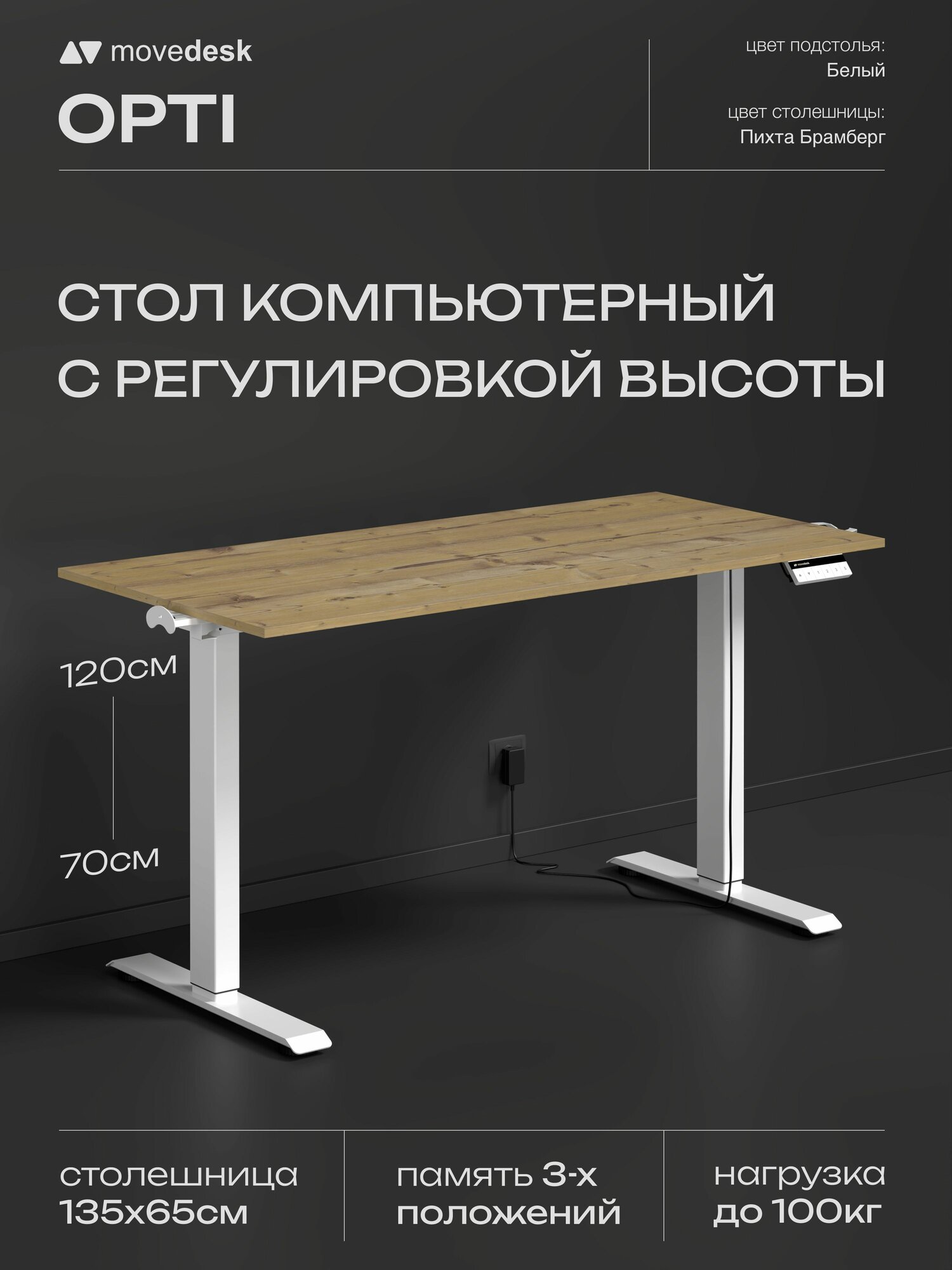 Стол компьютерный с подъемным механизмом Movedesk Opti Белый/Пихта Брамберг, ЛДСП Egger 135х65х1.6 см: сравнение цен, характеристики, фото, актуальное наличие и цены.