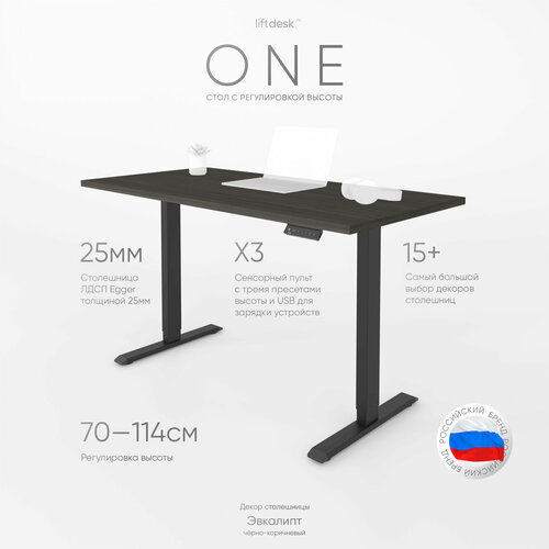 Стол компьютерный с регулировкой высоты для работы стоя сидя одномоторный liftdesk One Черный, Эвкалипт темно-коричневый, ЛДСП Egger 117х68х2.5 см: сравнение цен, характеристики, фото, актуальное наличие и цены.