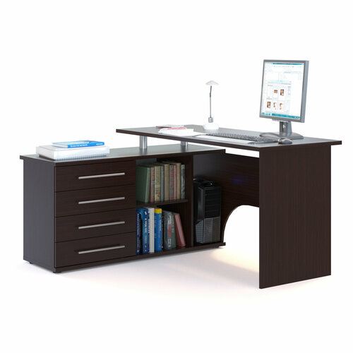 Стол компьютерный с тумбой КСТ-109Л левый, цвет венге, ШхГхВ 140х127х75 см, выдвижные ящики слева: сравнение цен, характеристики, фото, актуальное наличие и цены.