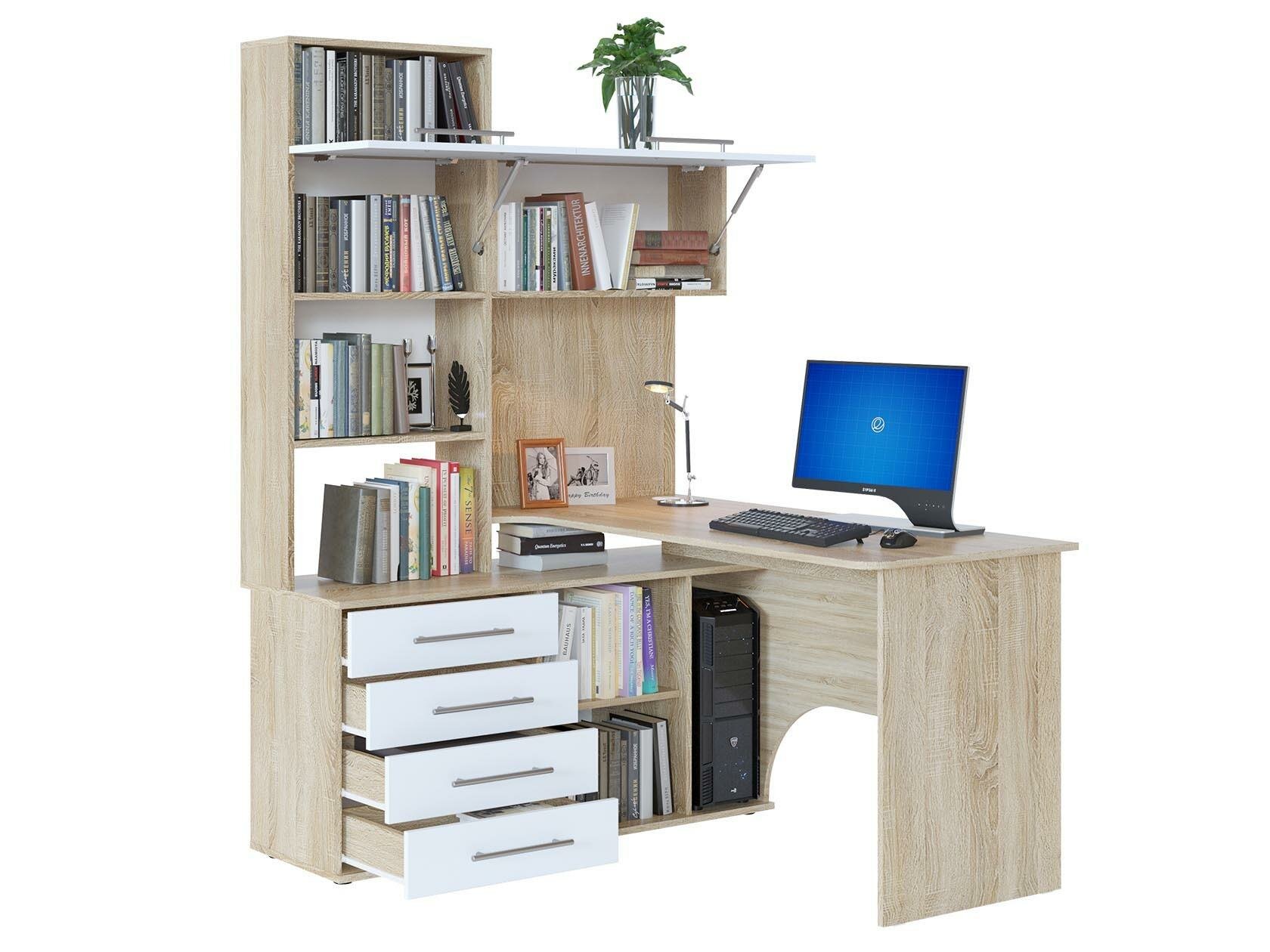 Стол компьютерный Сокол КСТ-14.1Л Левый Дуб сонома/Белый Размеры: Высота 1828мм Глубина 1235мм Ширина 1350мм: сравнение цен, характеристики, фото, актуальное наличие и цены.