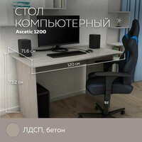 Стол письменный для школьника, компьютерный Ascetic 1200 Бетон, 120*71,6 см.: сравнение цен, характеристики, фото, актуальное наличие и цены.
