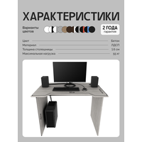 Дизайн и материалы: Стол выполнен в минималистичном стиле, что позволяет ему легко вписаться в любой интерьер. Материал столешницы - ЛДСП, а фасад - ЛДСП. Цвет товара - бетон, что придает ему строгость и элегантность.