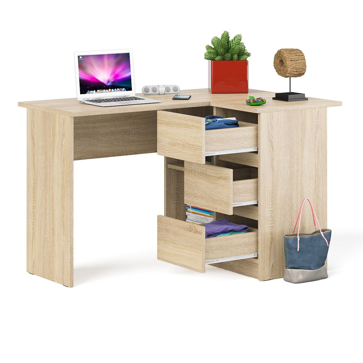 Угловой компьютерный стол Мори МС-16 правый дуб сонома, 124,4х84,9х76,6 см, ящики справа, НЕ ун. сб.: сравнение цен, характеристики, фото, актуальное наличие и цены.