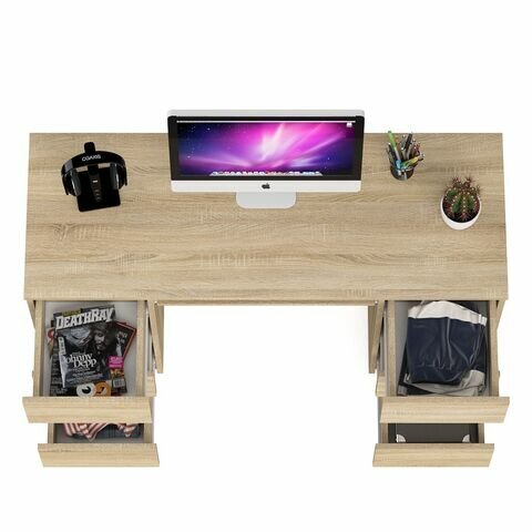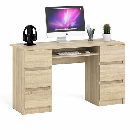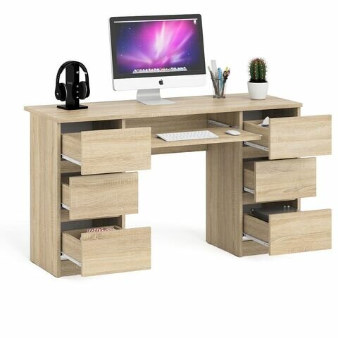 - Компьютерный стол оборудован шестью ящиками и выдвижной полкой для клавиатуры.
