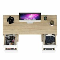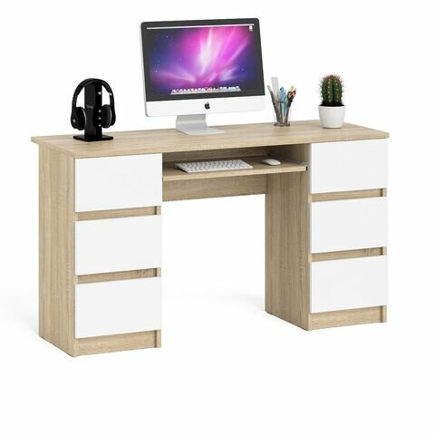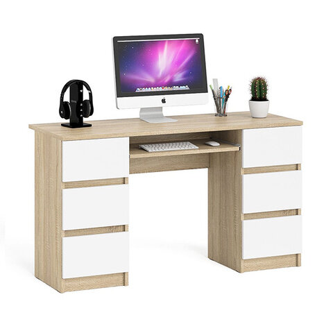 - Компьютерный стол оборудован шестью ящиками и выдвижной полкой для клавиатуры.