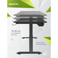 Особенностью стола является регулировка высоты (70/75/80 см), что позволяет адаптировать его под индивидуальные предпочтения пользователя.