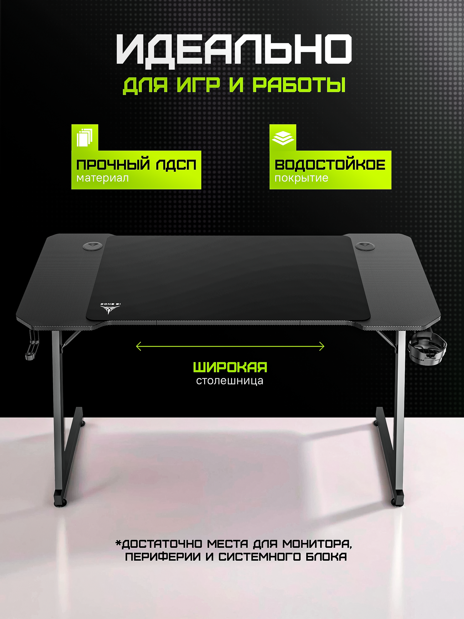 Игровой компьютерный стол ZONE 51 TRINE 120, Black, черный, с кабель-каналами: сравнение цен, характеристики, фото, актуальное наличие и цены.