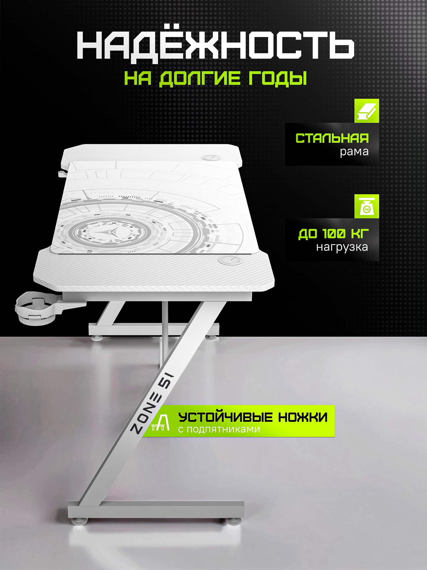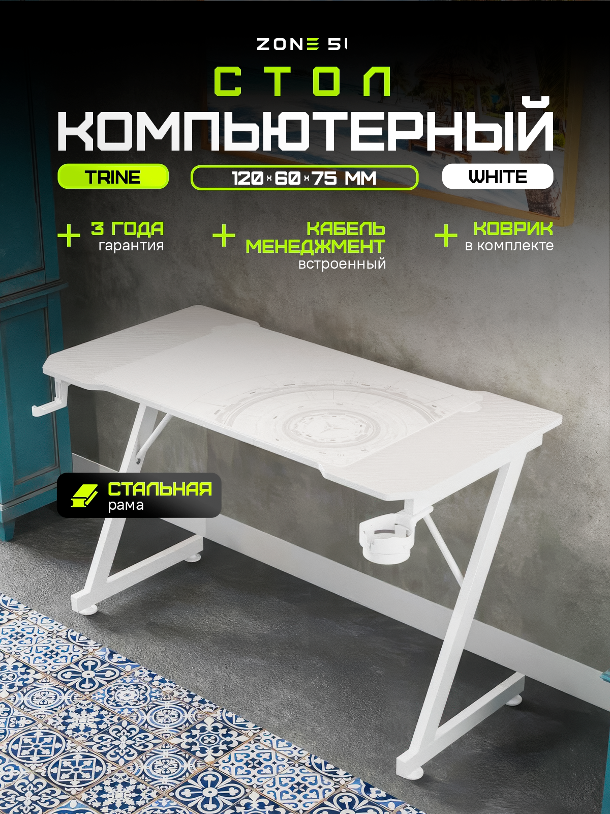 Стол компьютерный ZONE 51 TRINE 120 White - это сочетание стиля, функциональности и долговечности.