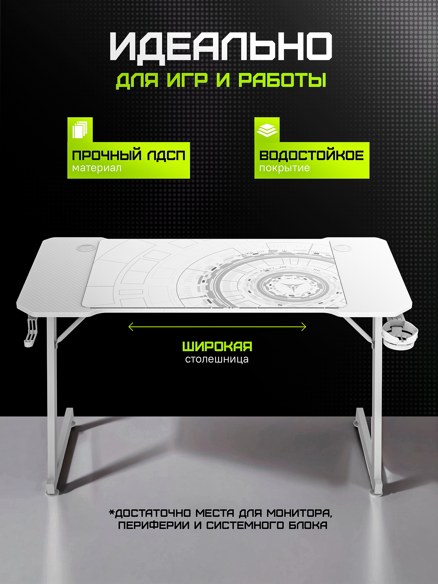 Особенностью стола является широкая столешница размером 120х60 см, что позволяет комфортно разместить все необходимые для работы или игры аксессуары.