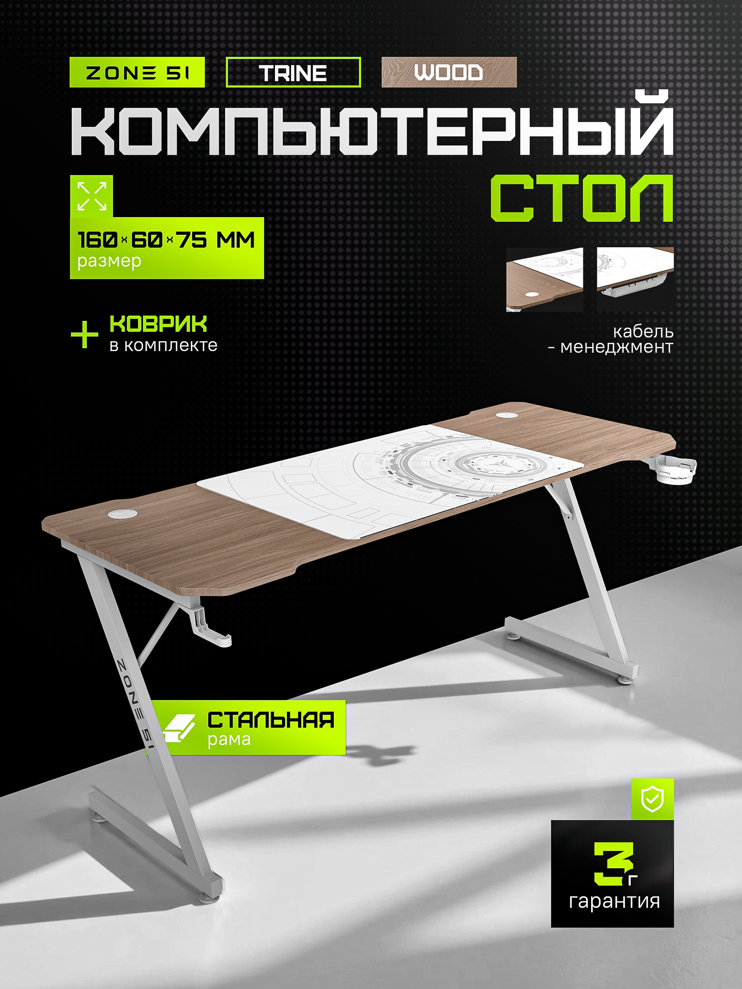 Стол компьютерный ZONE 51 TRINE 160 Wood/White: сравнение цен, характеристики, фото, актуальное наличие и цены.