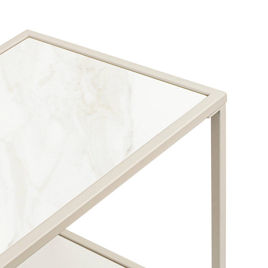 Материалы: столешницы – углеродистая сталь, керамика, каркас – сталь с порошковым покрытием. Размеры: 120х35х76 см. Цвет: белый/бежевый.