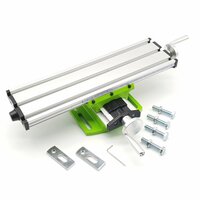 Размеры рабочего стола: 310х90 мм Перемещение по оси X: 200 мм Перемещение по оси Y: 50 мм Шаг перемещения (1 оборот маховика): 1,25 мм Размеры Т-образного паза: 15х8х6 мм Расстояние между Т-образными пазами: 34 мм Материал рабочего стола: Алюминий Габаритные размеры упаковки: 350x200x90 мм Вес: 1,6 кг