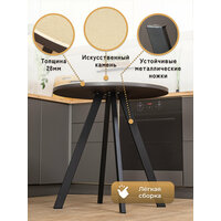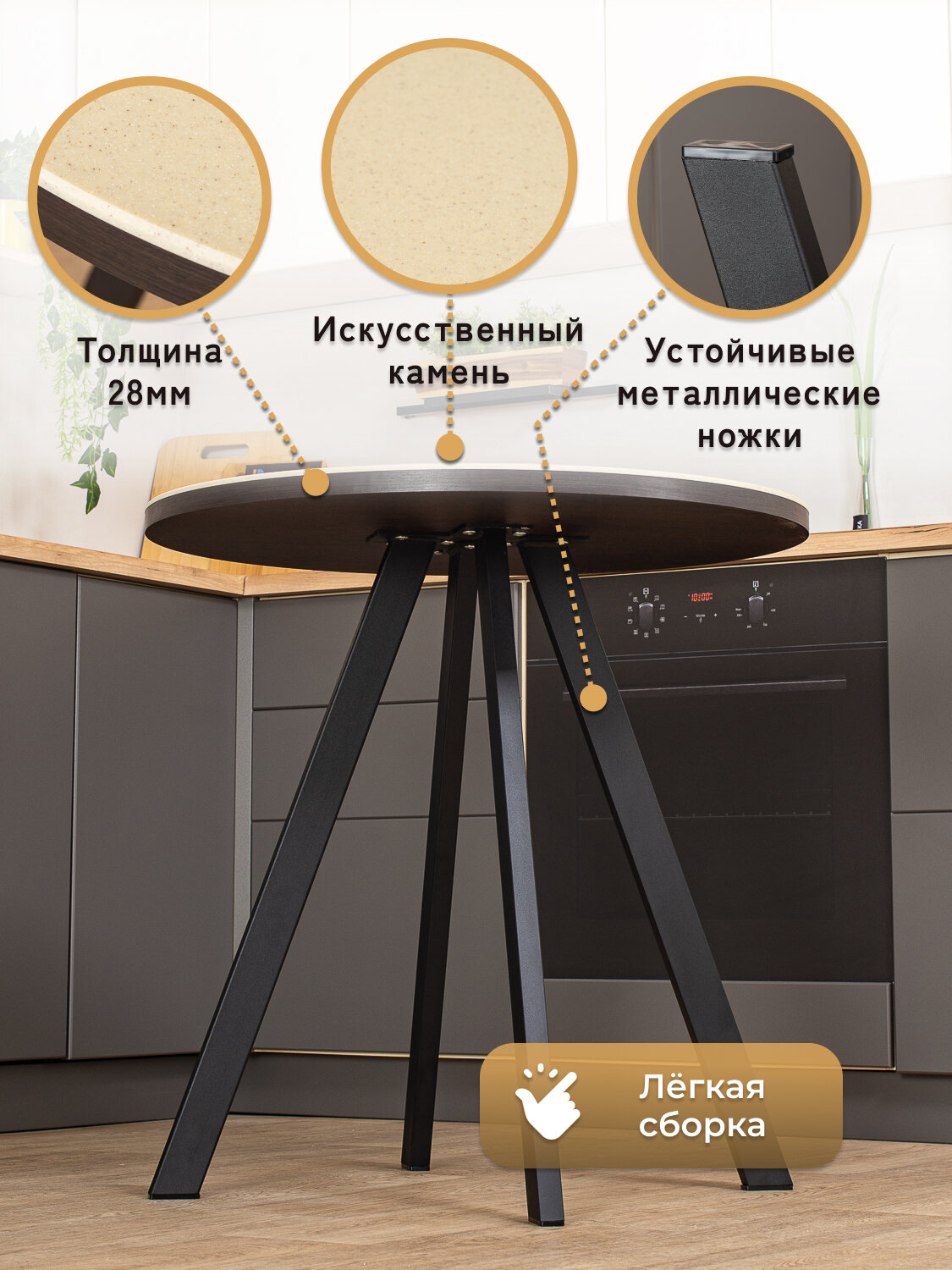 Стол кухонный Домотека Дуэт КМ 06 ВН 96 ЧР - это сочетание стиля и функциональности. Стол выполнен из искусственного камня, что обеспечивает его долговечность и устойчивость к внешним воздействиям. Искусственный камень не впитывает влагу и запахи, а также легко очищается от загрязнений. Дизайн стола выполнен в классическом стиле, что позволяет ему гармонично вписаться в любой интерьер кухни а также ресторана или кафе. Круглый стол с диаметром 75 см обеспечивает достаточно места для размещения всех необходимых кухонных принадлежностей. Бежевый цвет стола придает ему легкость и воздушность, делая его визуально более просторным и светлым. Стол Дуэт оснащен металлическими ножками, что придает ему дополнительную устойчивость и надежность. Выбирая стол кухонный Дуэт КМ 06 ВН 96 ЧР, вы получаете не только стильный и функциональный элемент интерьера, но и надежного помощника на вашей кухне.